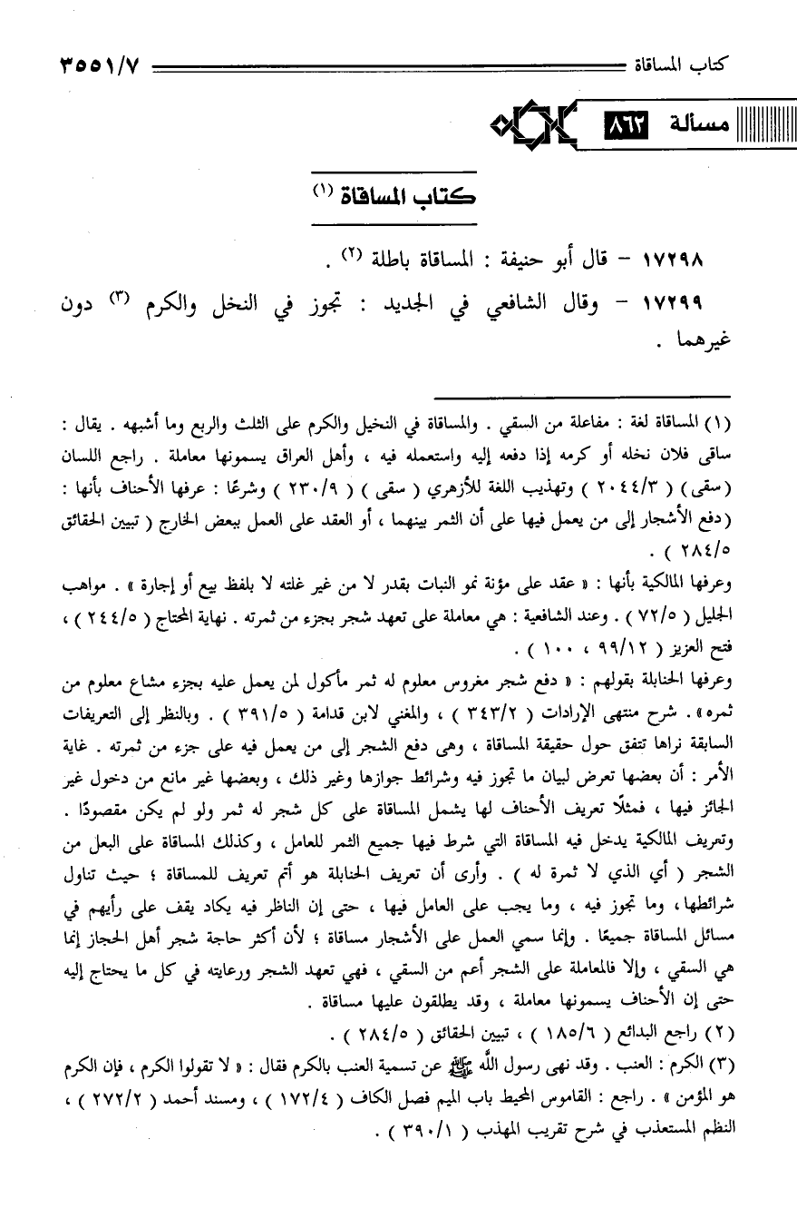 17298 - قال أبو حنيفة: المساقاة باطلة.