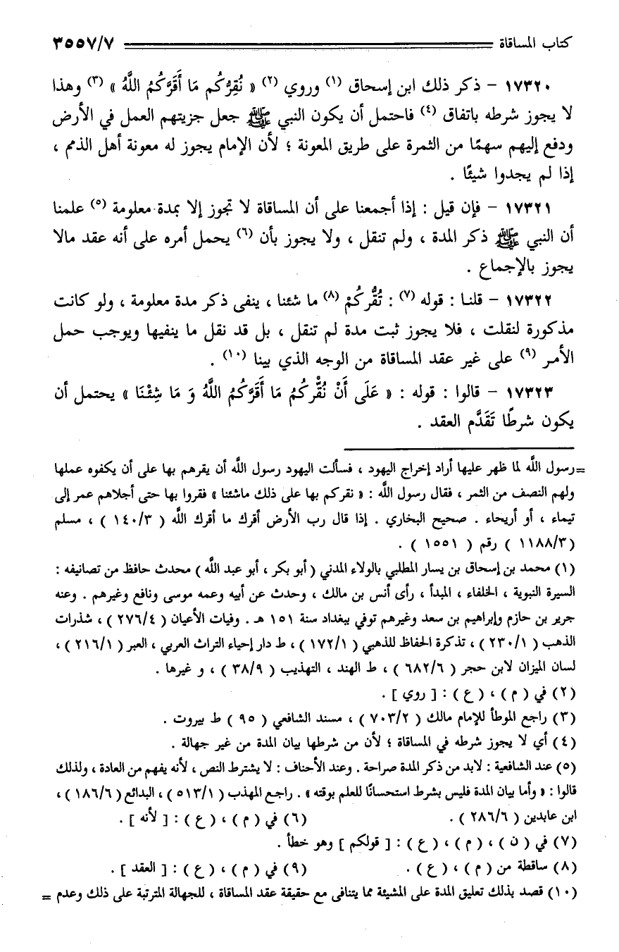 17322 - قلنا: قوله: تقركم ما شئنا، ينفى ذكر مدة معلومة، ولو كانت مذكورة لنقلت، فلا يجوز ثبت مدة لم تنقل، بل قد نقل ما ينفيها ويوجب حمل الأمر على غير عقد المساقاة من الوجه الذي بينا.
