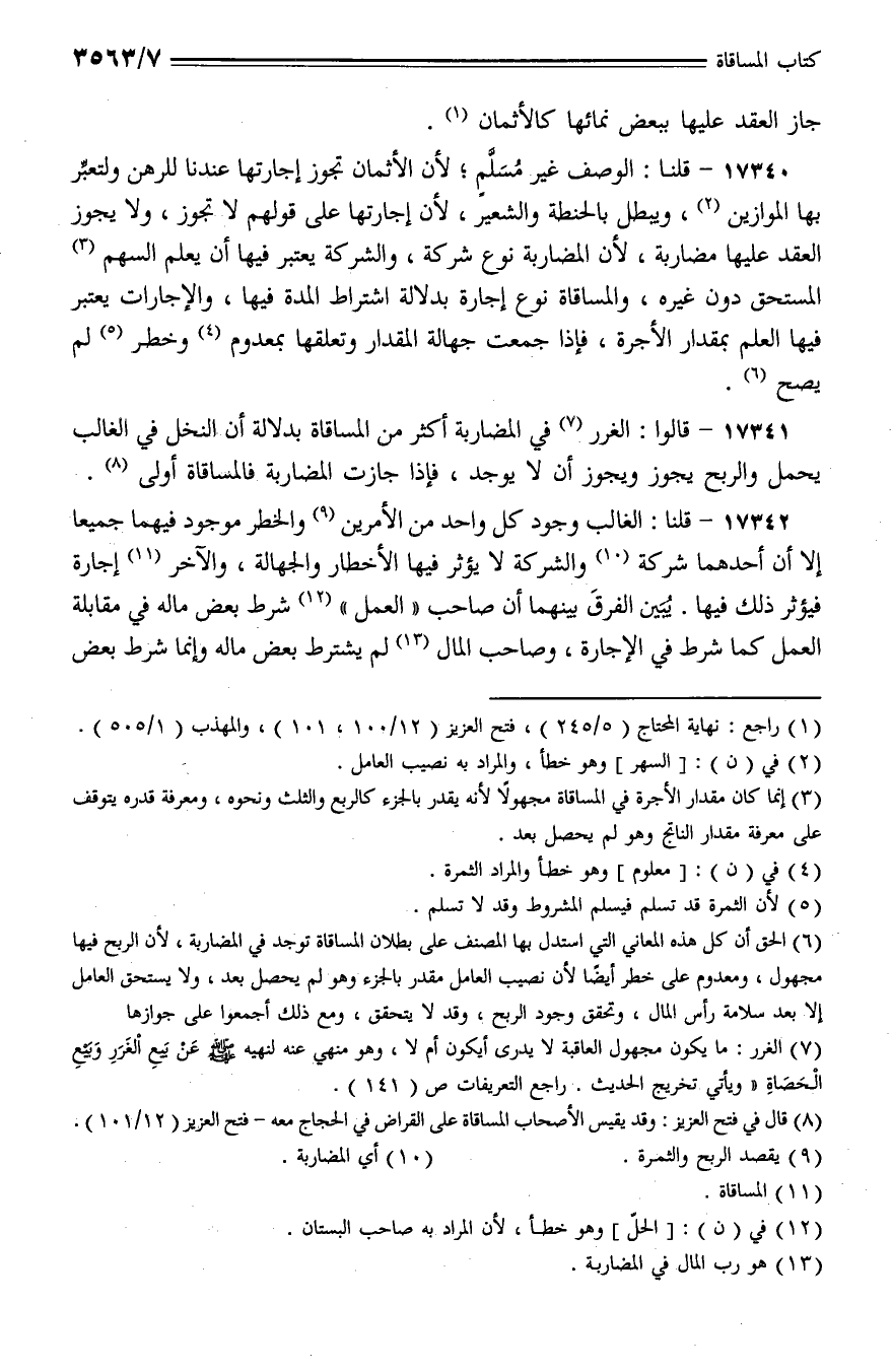 17341 - قالوا: الغرر في المضاربة أكثر من المساقاة بدلالة أن النخل في الغالب يحمل والربح يجوز ويجوز أن لا يوجد، فإذا جازت المضاربة فالمساقاة أولى.