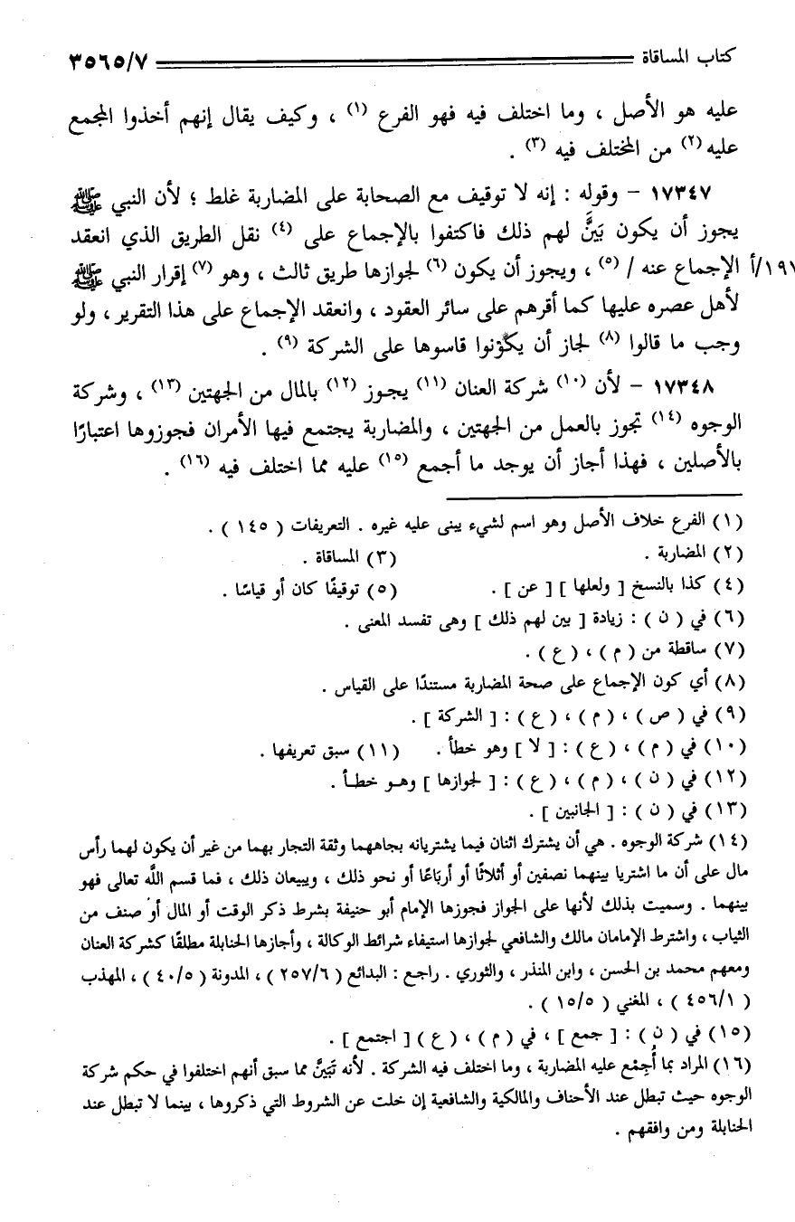 17348 - لأن شركة العنان يجوز بالمال من الجهتين، وشركة الوجوه تجوز بالعمل من الجهتين، والمضاربة يجتمع فيها الأمران فجوزوها اعتبارًا بالأصلين، فهذا أجاز أن يوجد ما أجمع عليه مما اختلف فيه.