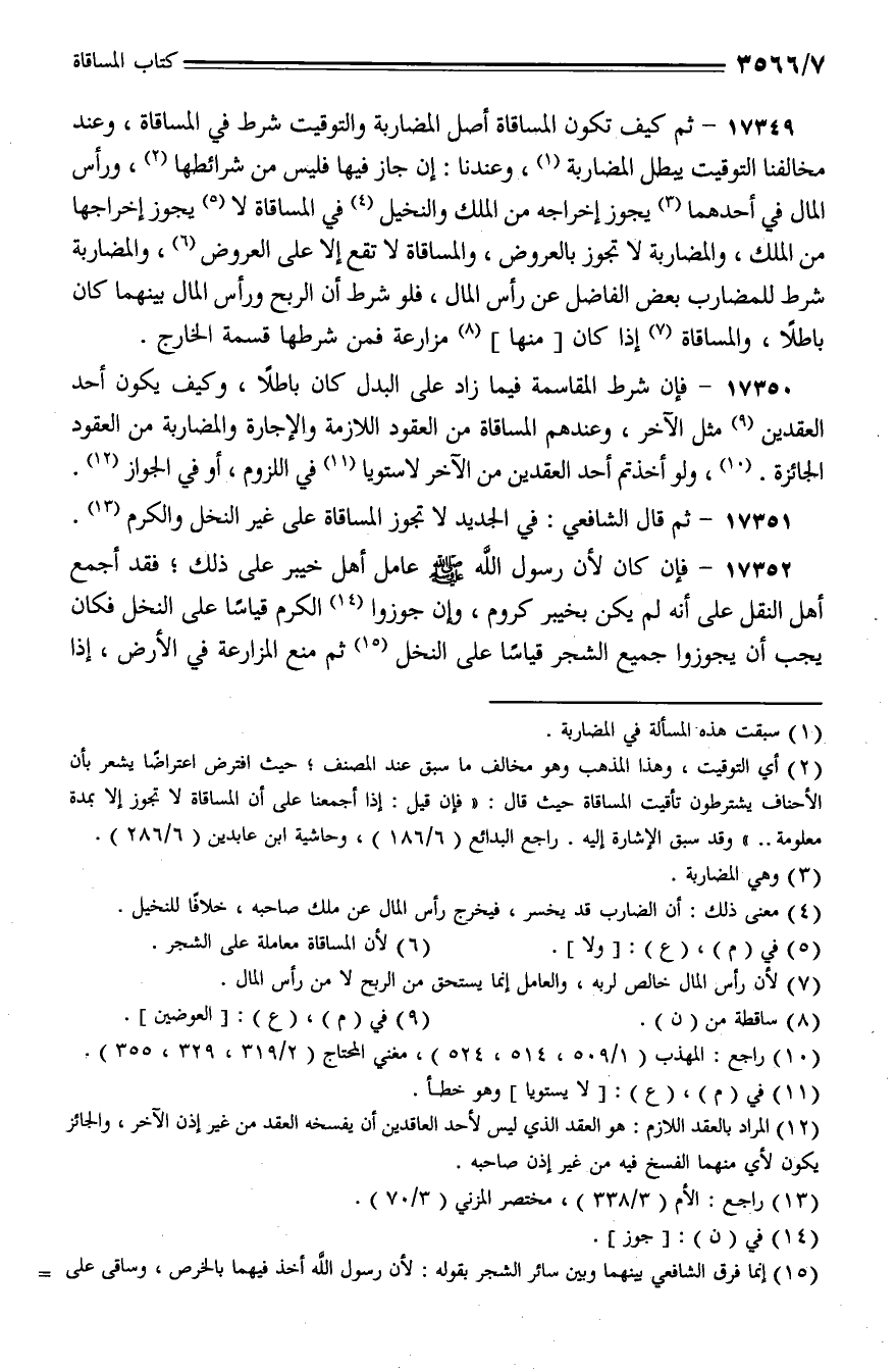 17349 - ثم كيف تكون المساقاة أصل المضاربة والتوقيت شرط في المساقاة، وعند مخالفنا التوقيت يبطل المضاربة، وعندنا: إن جاز فيها فليس من شرائطها، ورأس المال في أحدهما يجوز إخراجه من الملك والنخيل في المساقاة لا يجوز إخراجها من الملك، والمضاربة لا تجوز بالعروض، والمساقاة لا تقع إلا على العروض، والمضاربة شرط للمضارب بعض الفاضل عن رأس المال، فلو شرط أن الربح ورأس المال بينهما كان باطلًا، والمساقاة إذا كان [منها] مزارعة فمن شرطها قسمة الخارج.