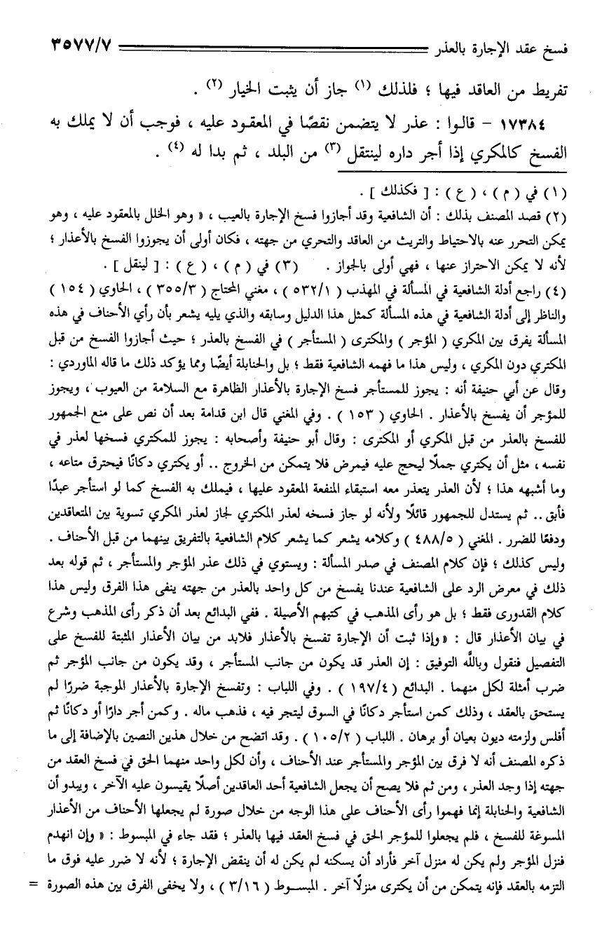 17384 - قالوا: عذر لا يتضمن نقصًا في المعقود عليه، فوجب أن لا يملك به الفسخ كالمكري إذا أجر داره لينتقل من البلد، ثم بدا له.