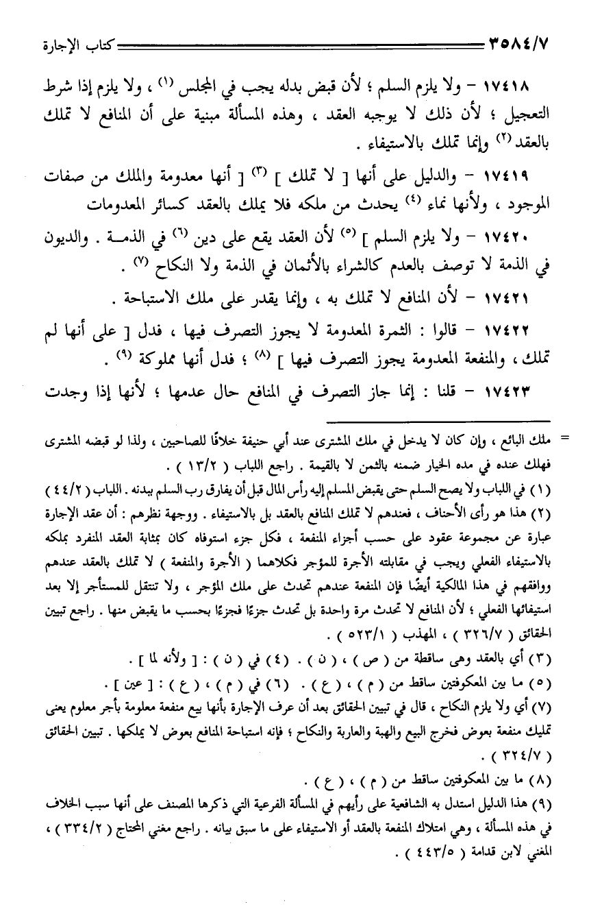 17419 - والدليل على أنها [لا تملك] [أنها معدومة والملك من صفات الموجود، ولأنها نماء يحدث من ملكه فلا يملك بالعقد كسائر المعدومات