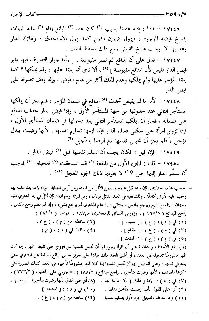 17446 - قلنا: قتله عندنا بسبب كان عند البائع يقام عليه البينات يفسخ قبضه الموجود، فيزول ضمان الثمن كما يزول الاستحقاق، وهلاك الدار وغصبها لا يوجب فسخ القبض ومع ذلك يسقط البدل.