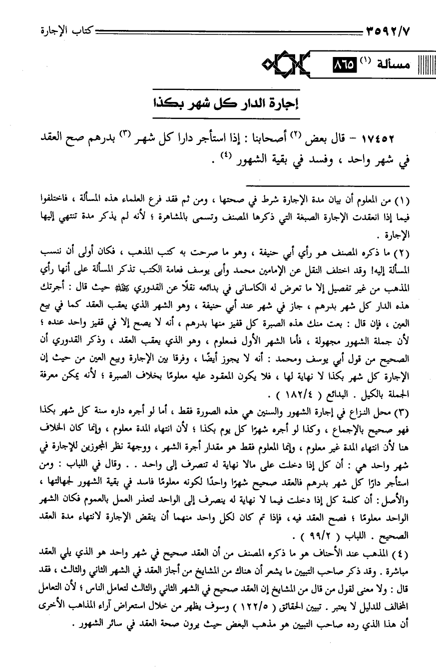 17452 - قال بعض أصحابنا: إذا استأجر دارا كل شهر بدرهم صح العقد في شهر واحد، وفسد في بقية الشهور.