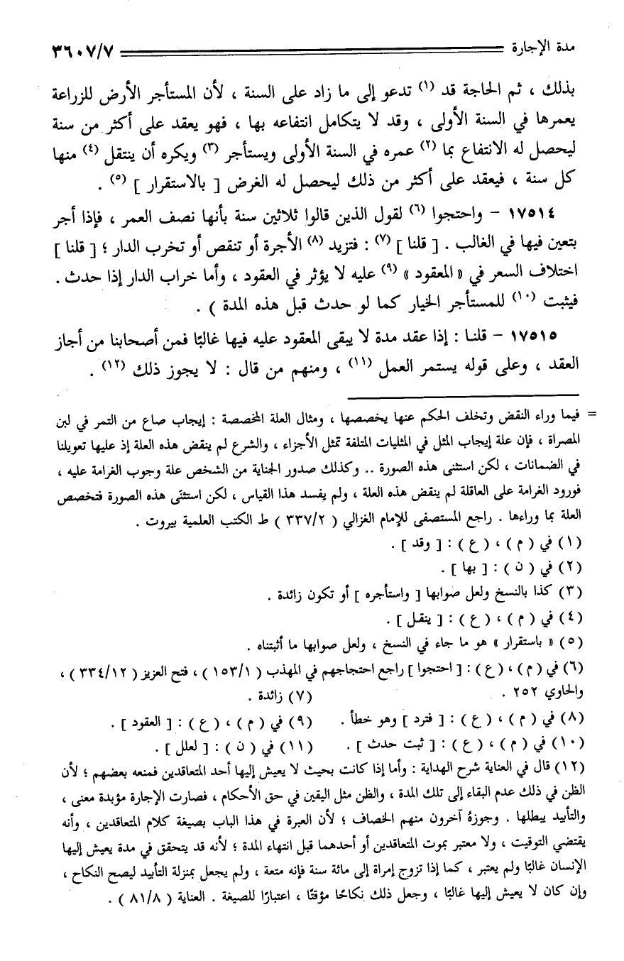 17514 - واحتجوا لقول الذين قالوا ثلاثين سنة بأنها نصف العمر، فإذا أجر بتعين فيها في الغالب. [قلنا]: فتزيد الأجرة أو تنقص أو تخرب الدار؛ [قلنا] اختلاف السعر في (المعقود) عليه لا يؤثر في العقود، وأما خراب الدار إذا حدث. فيثبت للمستأجر الخيار كما لو حدث قبل هذه المدة).