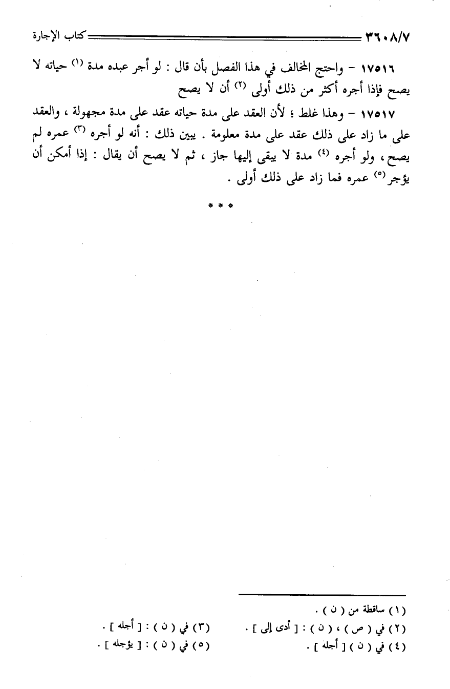 17516 - واحتج المخالف في هذا الفصل بأن قال: لو أجر عبده مدة حياته لا يصح فإذا أجره أكثر من ذلك أولى أن لا يصح.