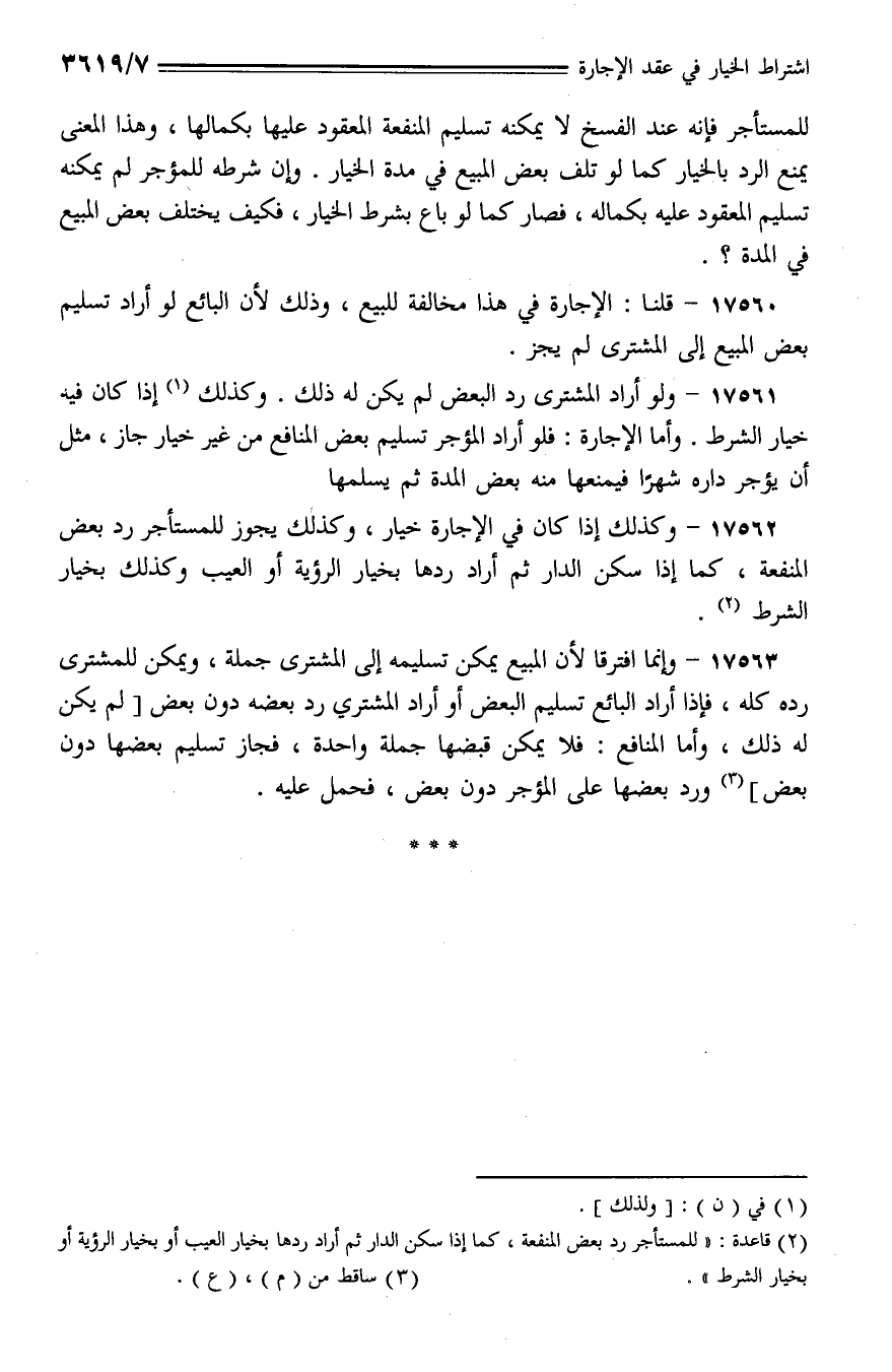 17562 - وكذلك إذا كان في الإجارة خيار، وكذلك يجوز للمستأجر رد بعض المنفعة، كما إذا سكن الدار ثم أراد ردها بخيار الرؤية أو العيب وكذلك بخيار الشرط.