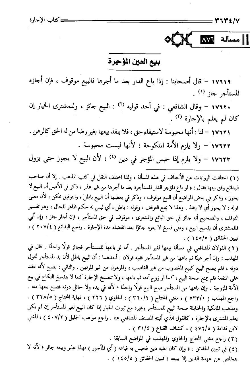 17620 - وقال الشافعي: في أحد قوليه: البيع جائز، وللمشترى الخيار إن كان لم يعلم بالإجارة.