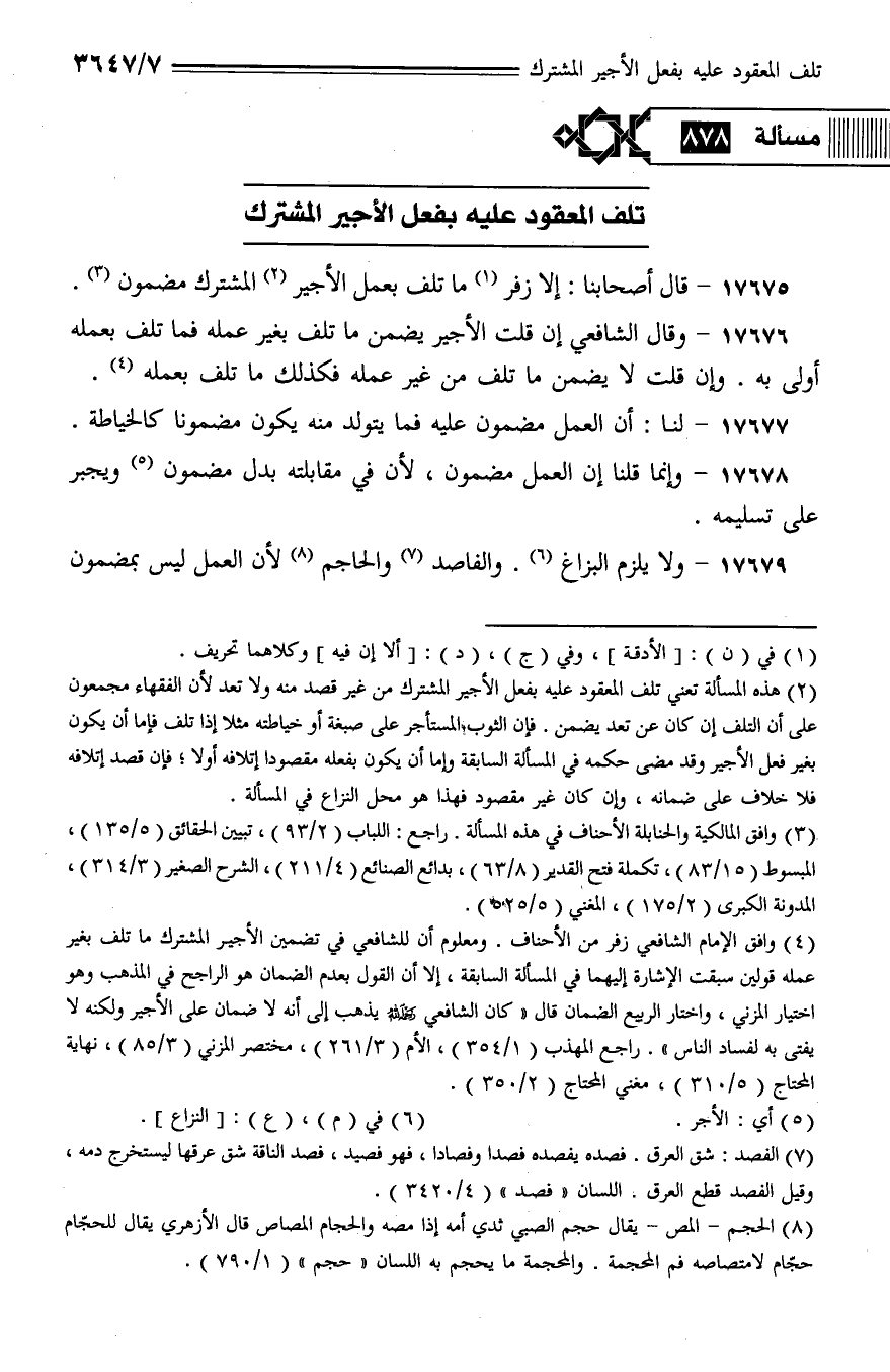 17675 - قال أصحابنا: إلا زفر ما تلف بعمل الأجير المشترك مضمون.