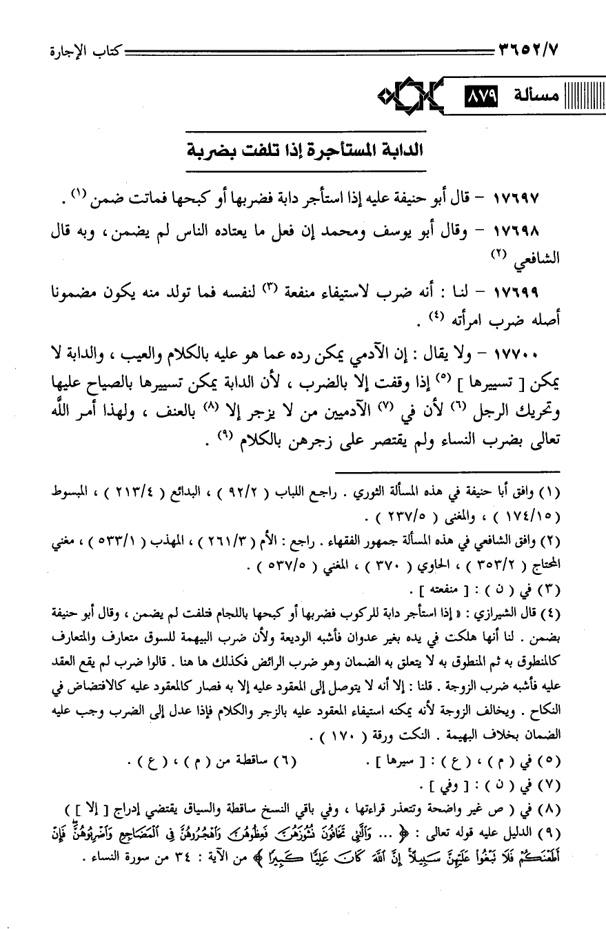17700 - ولا يقال: إن الآدمي يمكن رده عما هو عليه بالكلام والعيب، والدابة لا يمكن [تسييرها] إذا وقفت إلا بالضرب، لأن الدابة يمكن تسييرها بالصياح عليها وتحريك الرجل لأن في الآدميين من لا يزجر إلا بالعنف، ولهذا أمر الله تعالى بضرب النساء ولم يقتصر على زجرهن بالكلام.