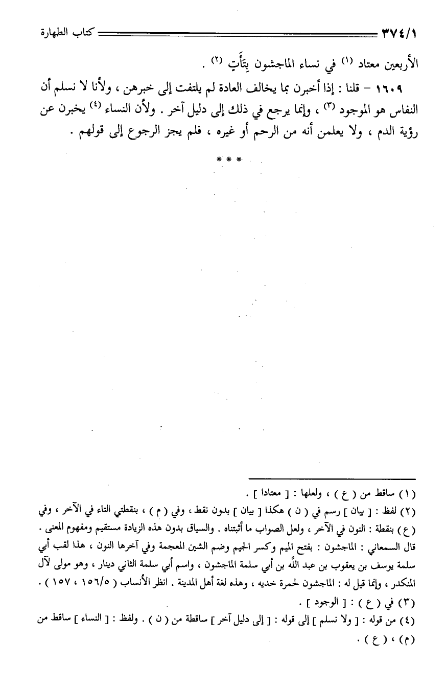 1609 - قلنا: إذا أخبرن بما يخالف العادة لم يلتفت إلى خبرهن، ولأنا لا نسلم أن النفاس هو الموجود، وإنما يرجع في ذلك إلى دليل آخر. ولأن النساء يخبرن عن رؤية الدم، ولا يعلمن أنه من الرحم أو غيره، فلم يجز الرجوع إلى قولهم.