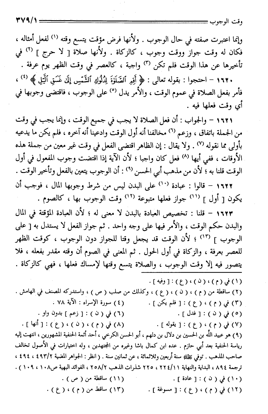 1620 - احتجوا: بقوله تعالى: {أقم الصلاة لدلوك الشمس إلى غسق الليل}، فأمر بفعل الصلاة في عموم الوقت، والأمر يدل على الوجوب، فاقتضى وجوبها في أي وقت فعلها فيه.