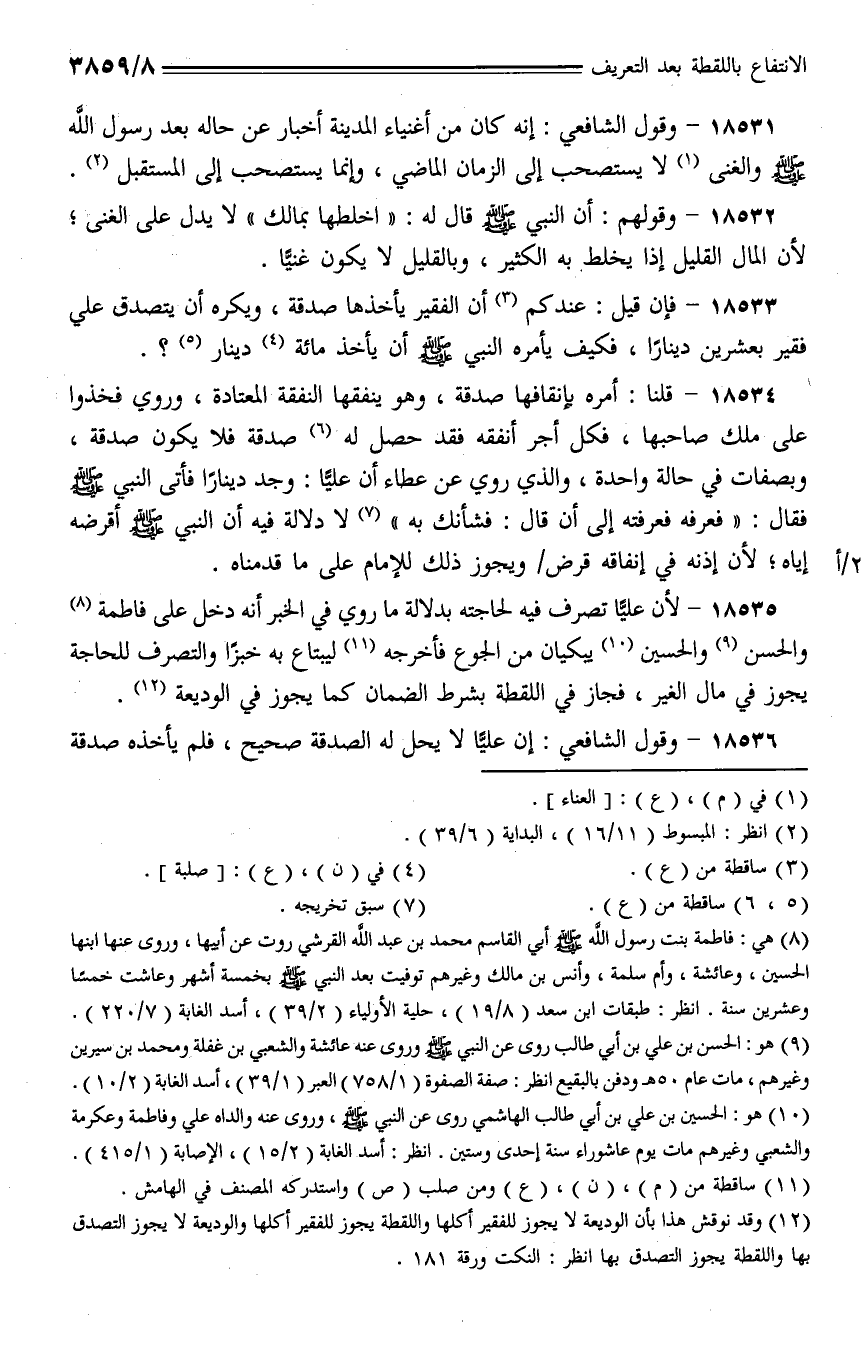 18531 - وقول الشافعي: إنه كان أغنياء المدينة أخبار عن حاله بعد رسول الله - صلى الله عليه وسلم - والغنى لا يستصحب إلى الزمان الماضي، وإنما يستصحب إلى المستقبل.