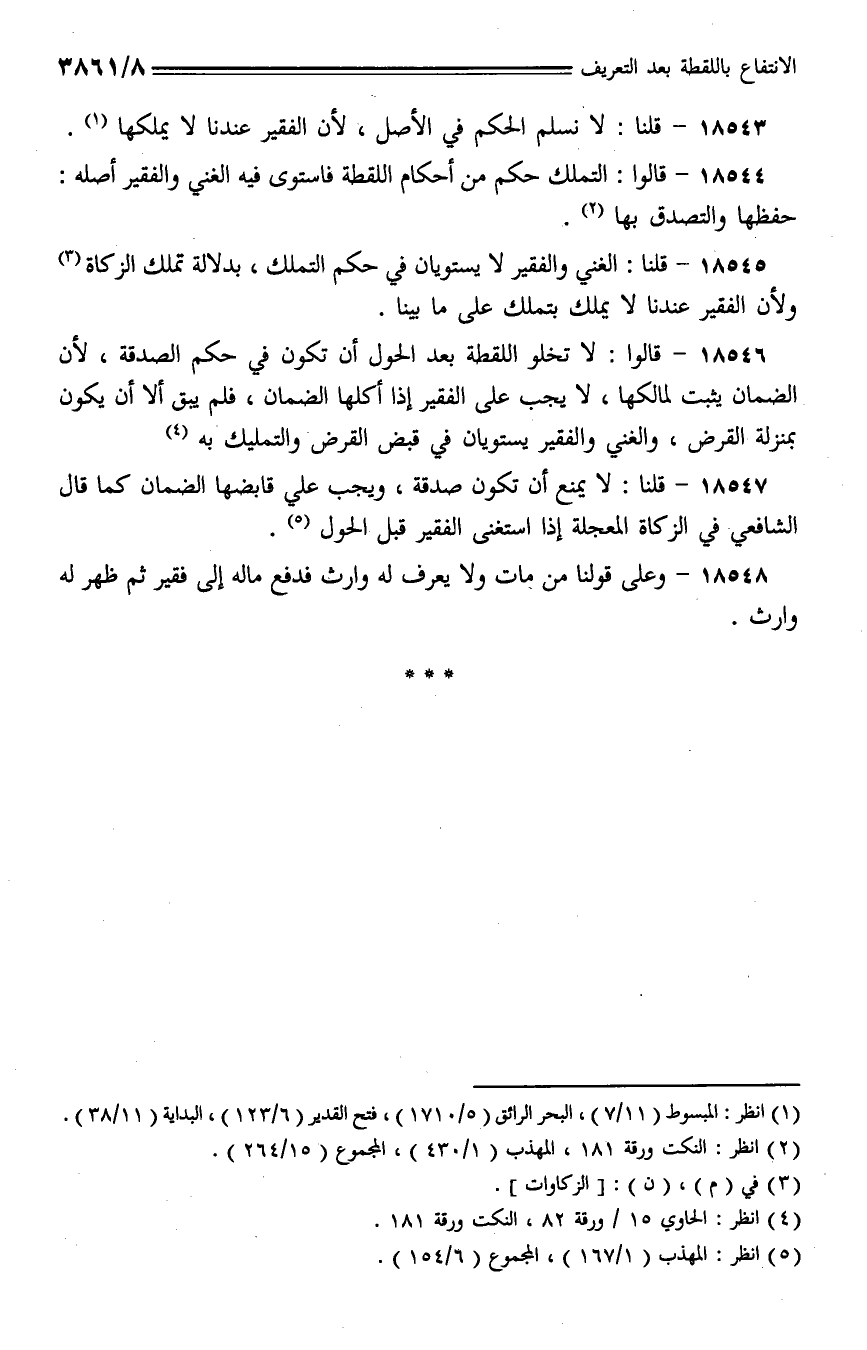 18544 - قالوا: التملك حكم من أحكام اللقطة فاستوى فيه الغني والفقير أصله: حفظها والتصدق بها.