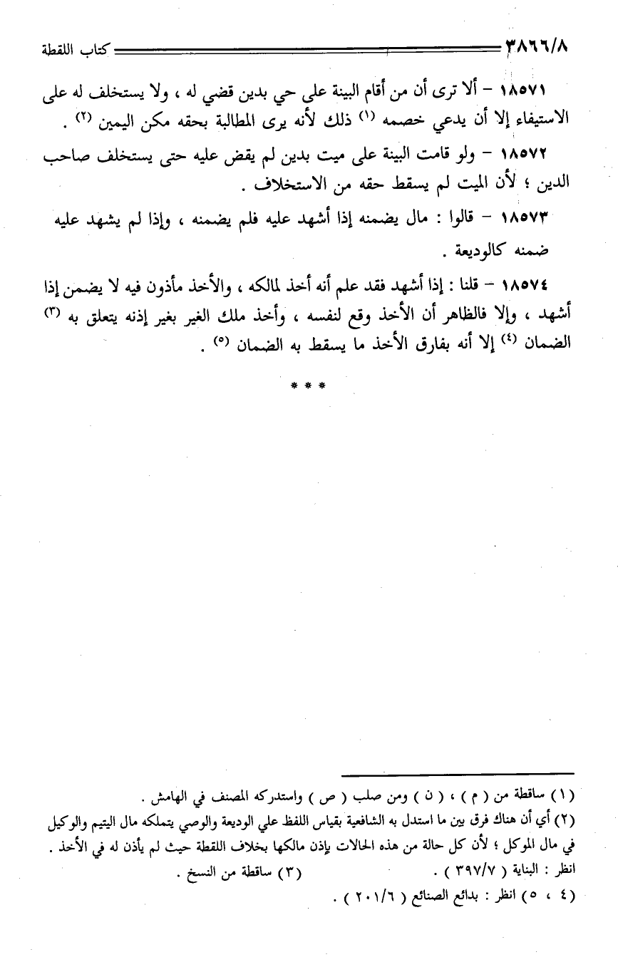18574 - قلنا: إذا أشهد فقد علم أنه أخذ لمالكه، والأخذ مأذون فيه لا يضمن إذا أشهد، وإلا فالظاهر أن الأخذ وقع لنفسه، وأخذ ملك الغير بغير إذنه يتعلق به الضمان إلا أنه يفارق الأخذ ما يسقط به الضمان.