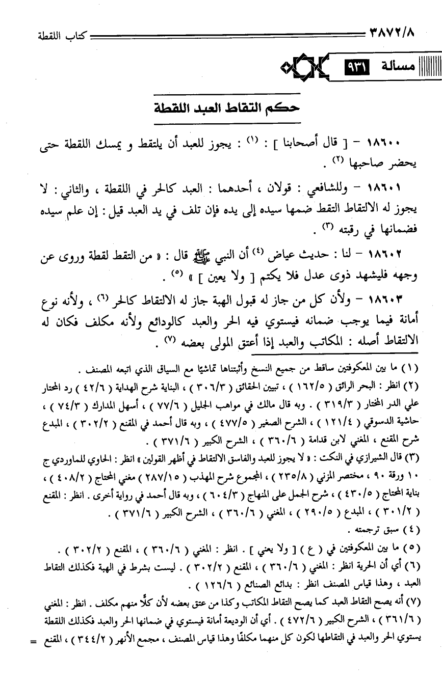 18600 - [قال أصحابنا]: يجوز للعبد أن يلتقط ويمسك اللقطة حتى يحضر صاحبها.