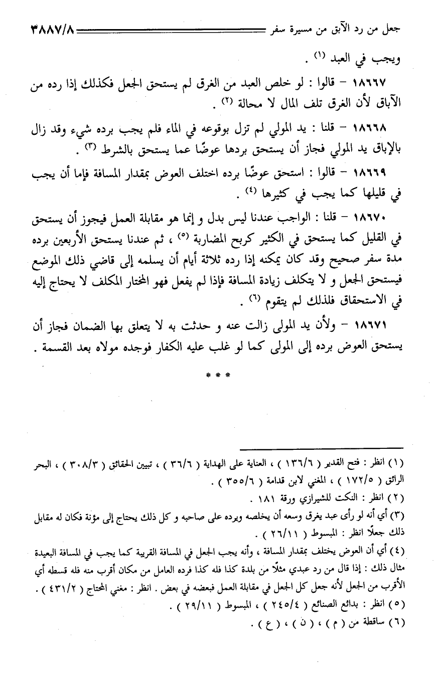 18669 - قالوا: استحق عوضا برده اختلف العوض بمقدار المسافة فإما أن يجب في قليلها كما يجب في كثيرها.