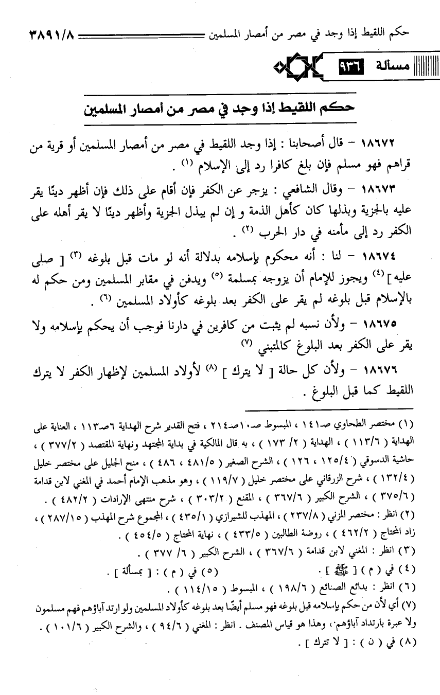 18676 - ولأن كل حالة [لا يترك] لأولاد المسلمين لإظهار الكفر لا يترك اللقيط كما قبل البلوغ.