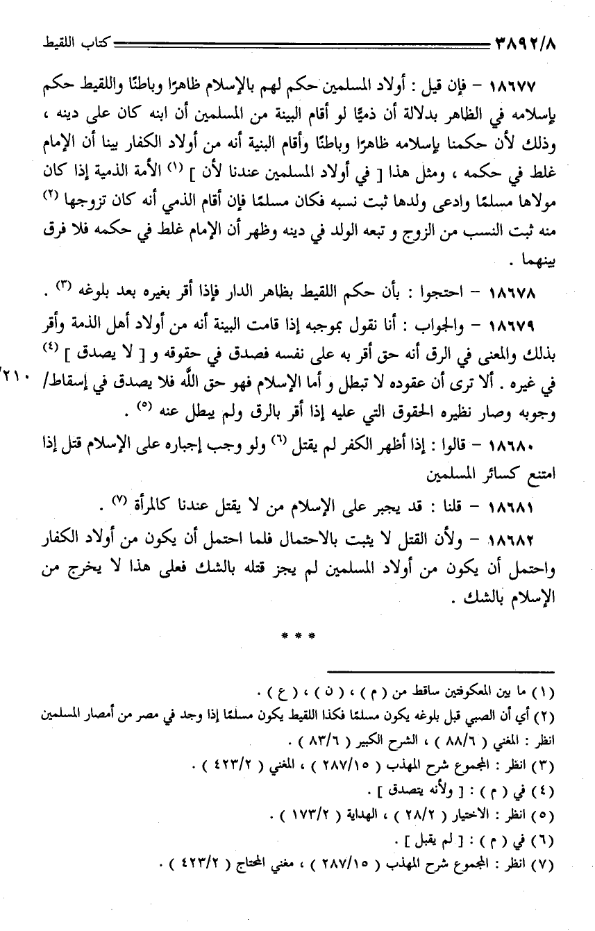 18682 - ولأن القتل لا يثبت بالاحتمال فلما احتمل أن يكون من أولاد الكفار واحتمل أن يكون من أولاد المسلمين لم يجز قتله بالشك فعلى هذا لا يخرج من الإسلام بالشك.
