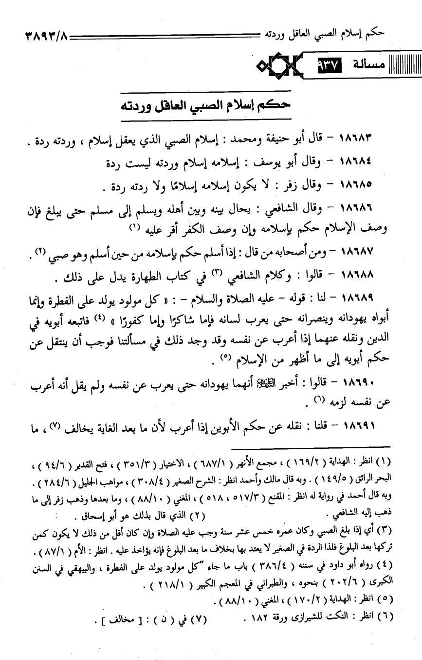18684 - وقال أو يوسف: إسلامه إسلام وردته ليست ردة.