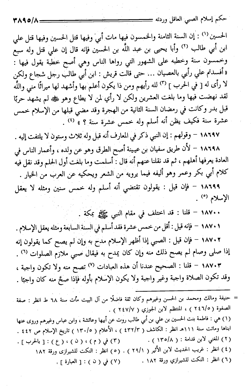 18701 - فإنه قيل أقل من خمس عشرة فقد أسلم في السنة السابعة ومثله يعقل الإسلام.
