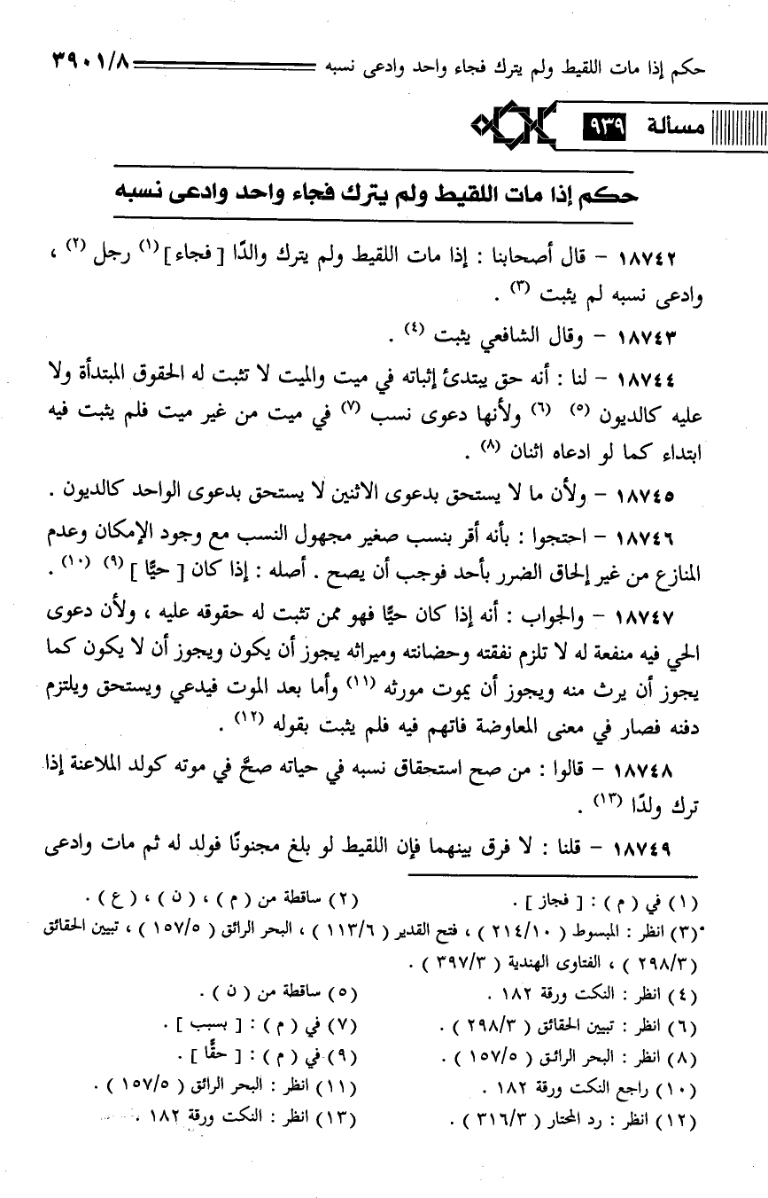 18748 - قوال: من صح استحقاق نسبه في حياته صح في موته كولد الملاعنة إذا ترك ولدا.