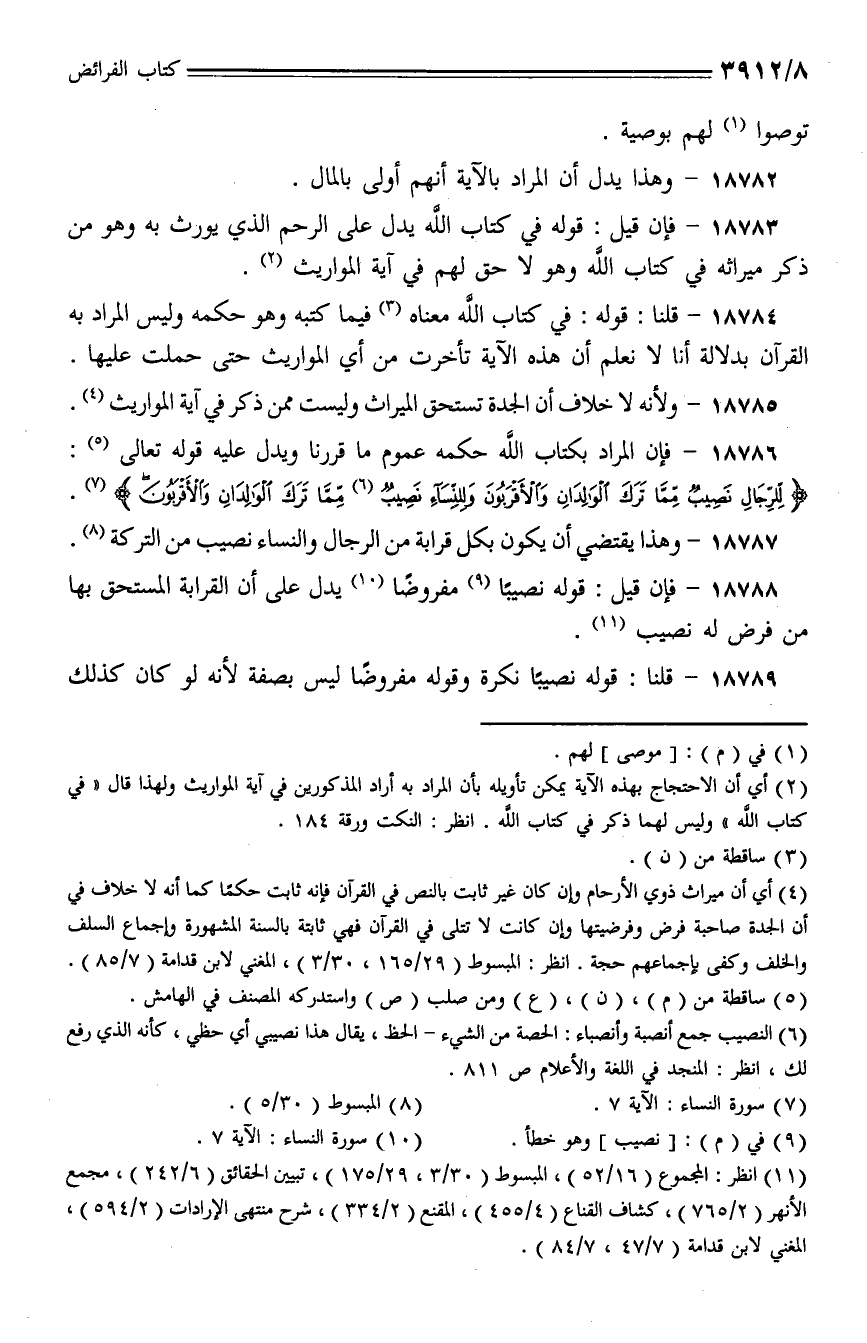 18787 - وهذا يقتضي أن يكون بكل قرابة من الرجال والنساء نصيب من التركة.