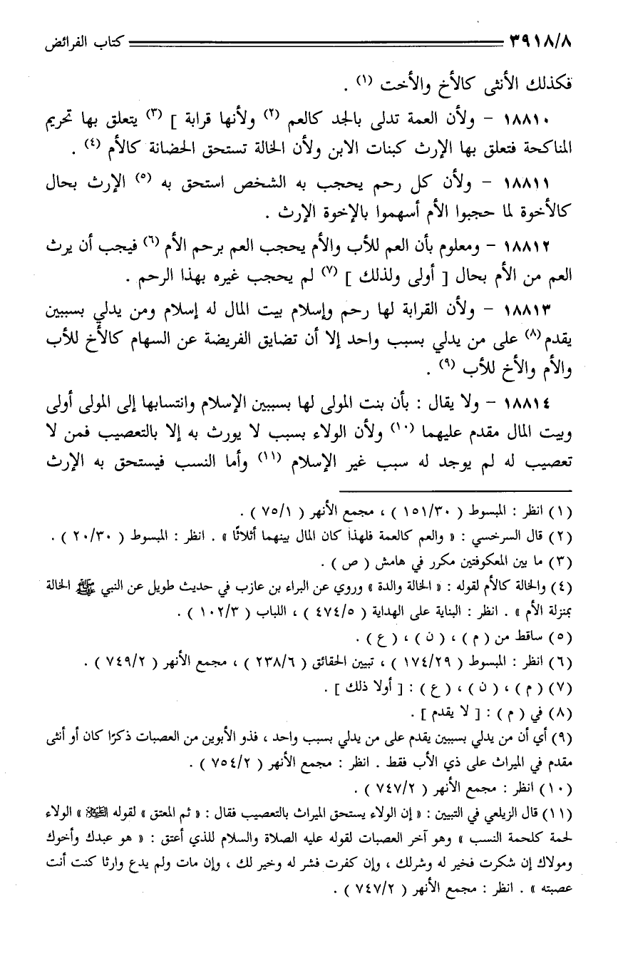 18812 - ومعلوم بأن العم للأب والأم يحجب العم برحم الأم فيجب أن يرث العم من الأم بحال [أولى ولذلك] لم يحجب غيره بهذا الرحم.