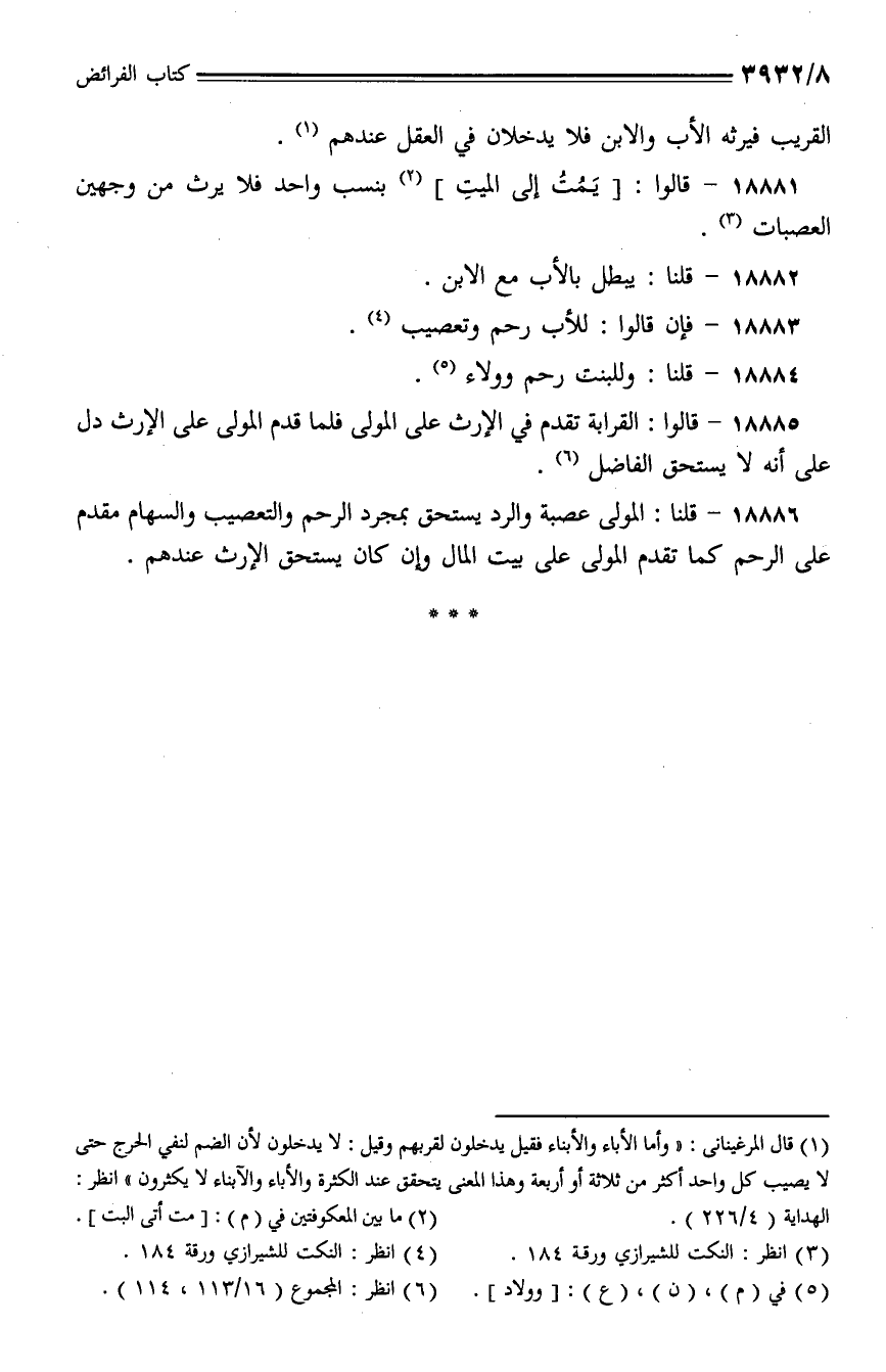 18886 - قلنا: المولى عصبة والرد يستحق بمجرد الرحم والتعصيب والسهام مقدم على الرحم كما تقدم المولى على بيت المال وإن كان يستحق الإرث عندهم.