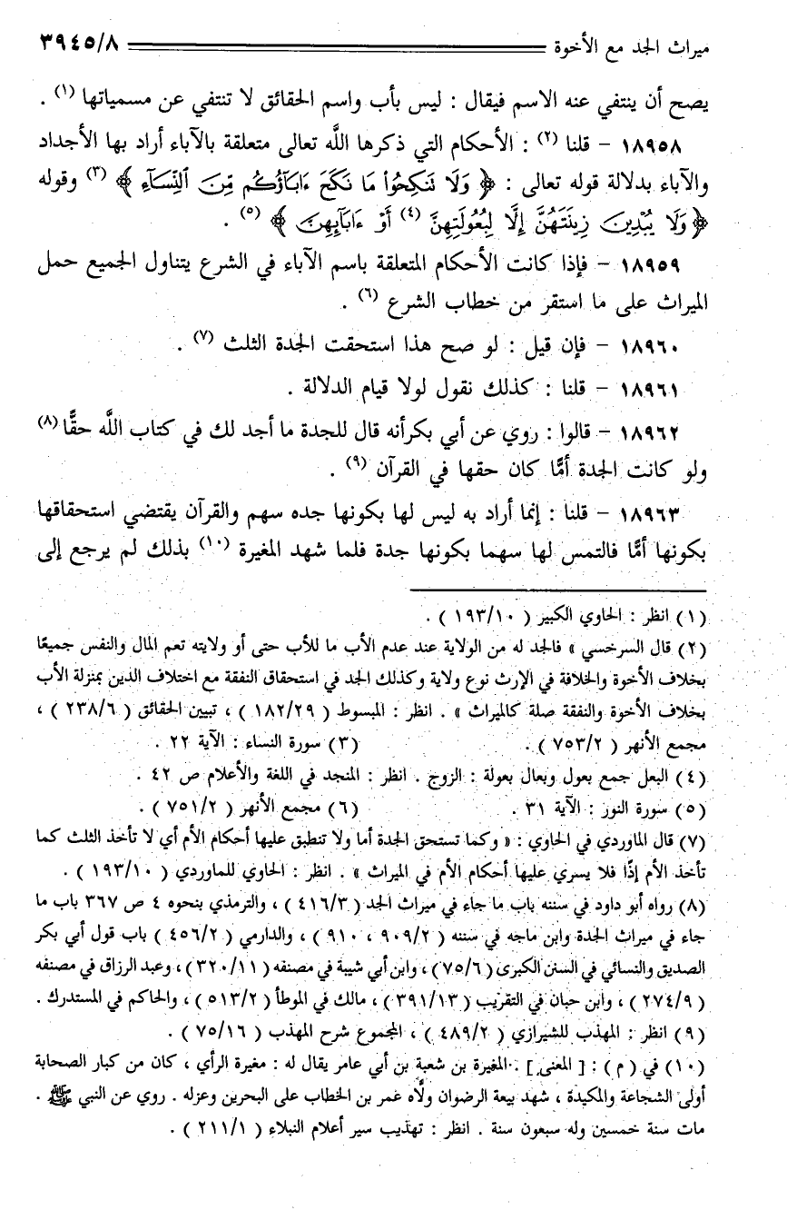 18959 - فإذا كانت الأحكام المتعلقة باسم الآباء في الشرع يتناول الجميع حمل الميراث على ما استقر من خطاب الشرع.