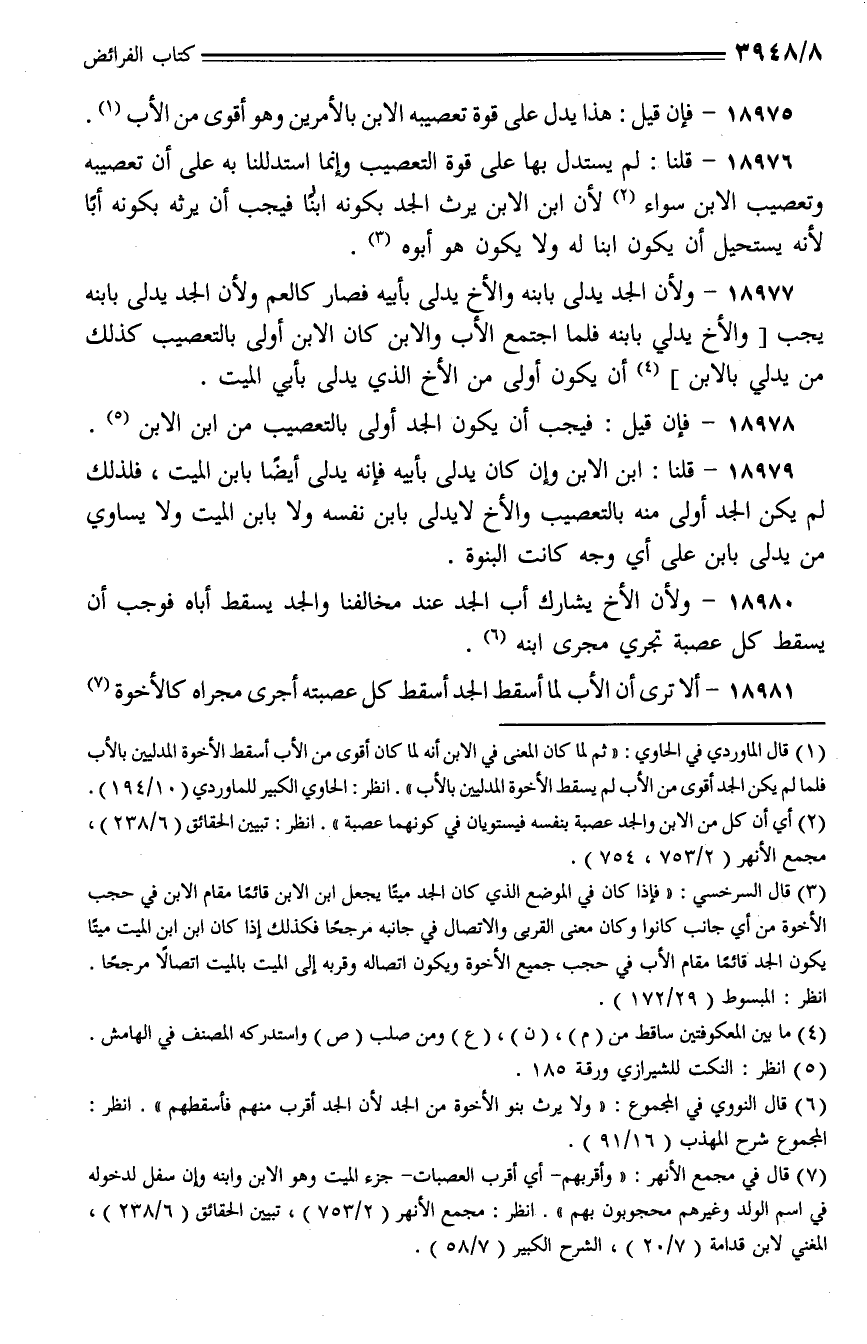 18976 - قلنا: لم يستدل بها على قوة التعصيب وإنما استدللنا به على أن تعصيبه وتعصيب الابن سواء لأن ابن الابن يرث الجد بكونه ابنا فيجب أن يرثه بكونه أبا لأنه يستحيل أن يكون ابنا له ولا يكون هو أبوه.