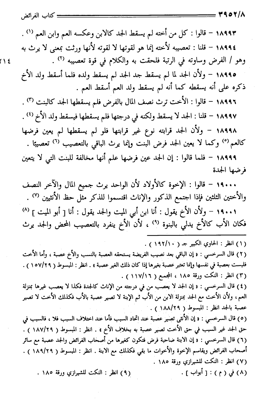 18995 - ولأن الجد لما لم يسقط جد الجد لم يسقط ولده فلما أسقط ولد الأخ ذكره على أنه يسقطه كما أنه لم يسقط ولد العم أسقط العم.