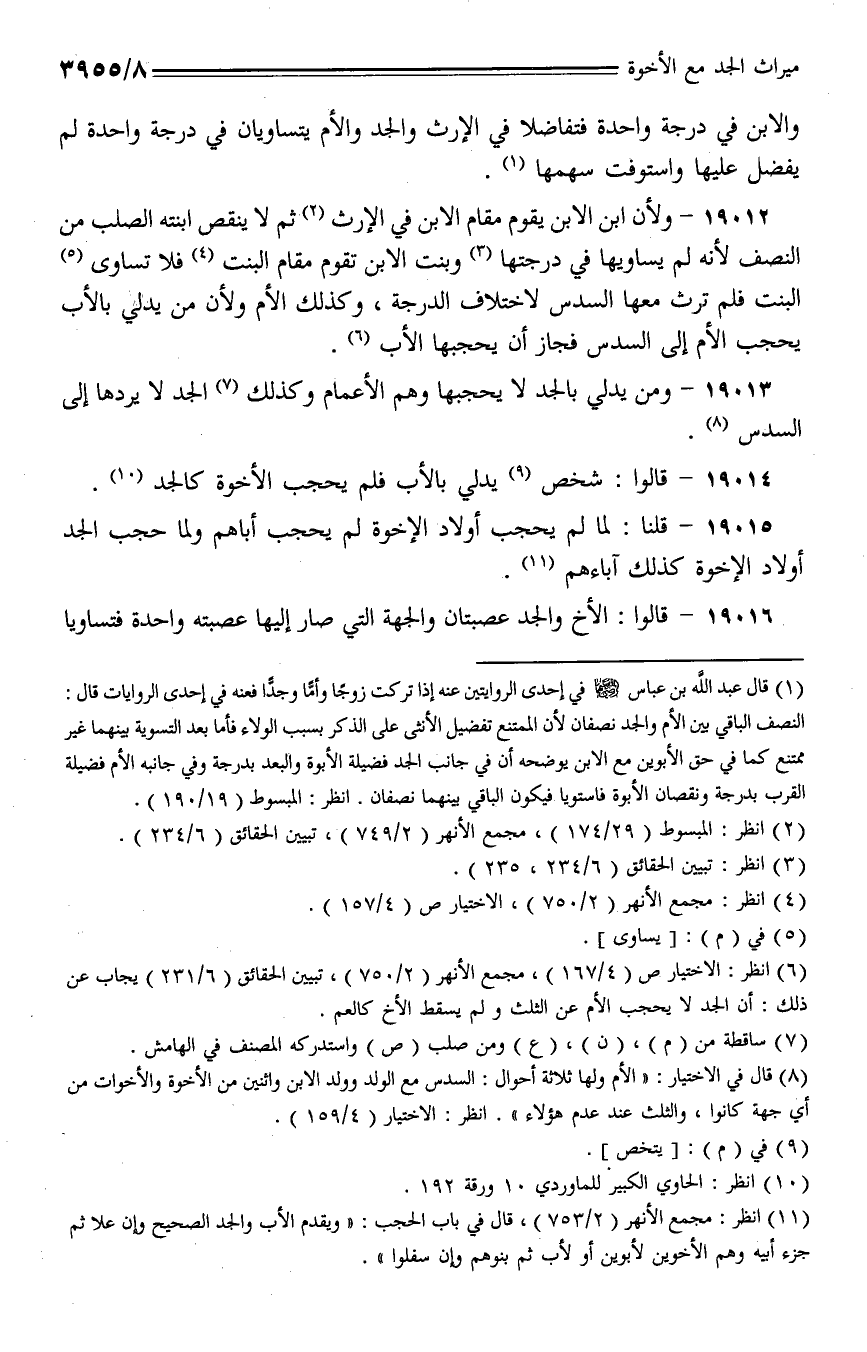 19015 - قلنا: لما لم يحجب أولاد الإخوة لم يحجب أباهم ولما حجب الجد أولاد الإخوة كذلك آباءهم.