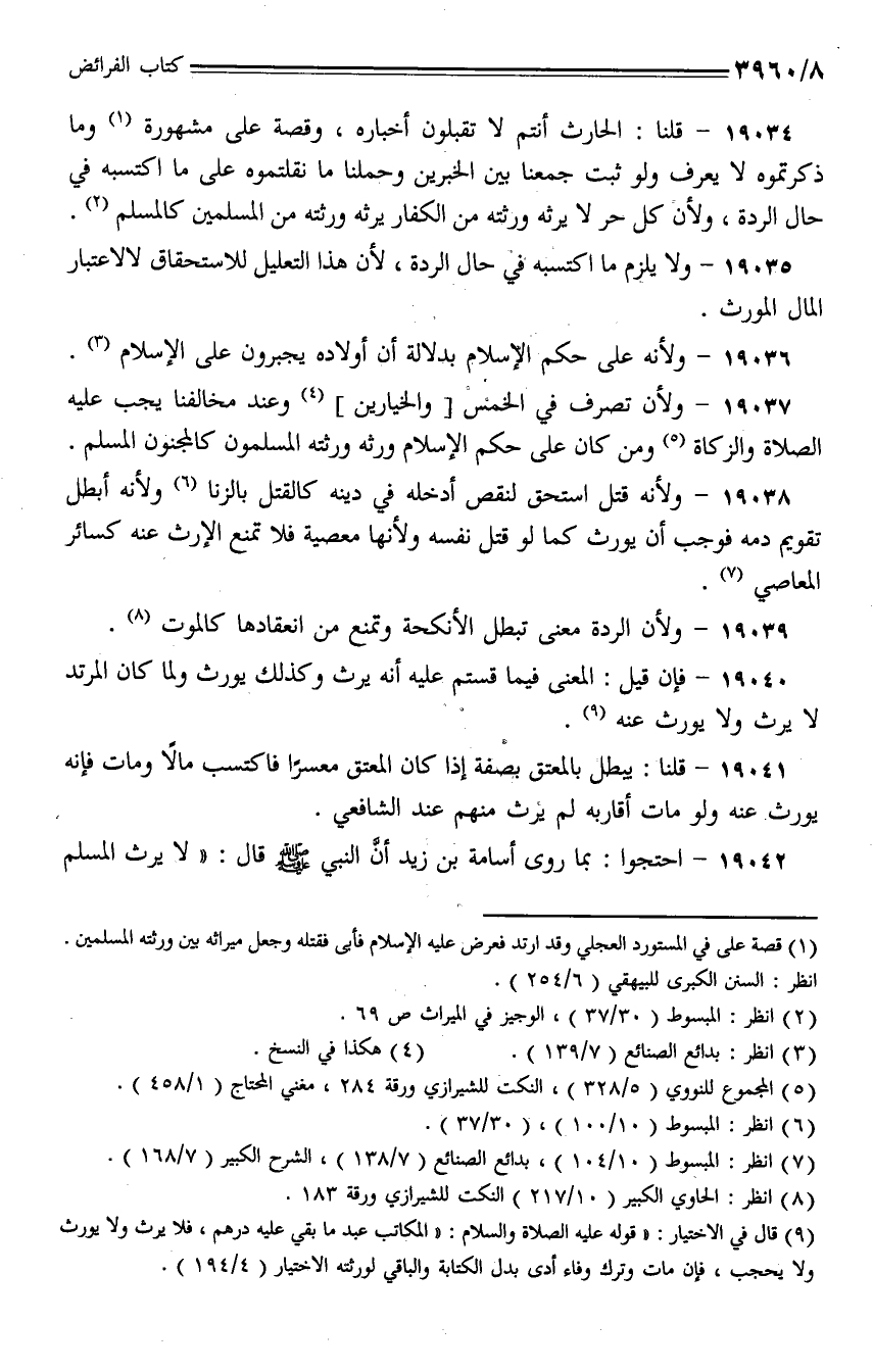 19034 - قلنا: الحارث أنتم لا تقبلون أخباره، وقصة علي مشهورة وما ذكرتموه لا يعرف ولو ثبت جمعنا بين الخبرين وحملنا ما نقلتموه على ما اكتسبه في حال الردة، ولأن كل حر لا يرثه ورثته من الكفار يرثه ورثته من المسلمين كالمسلم.