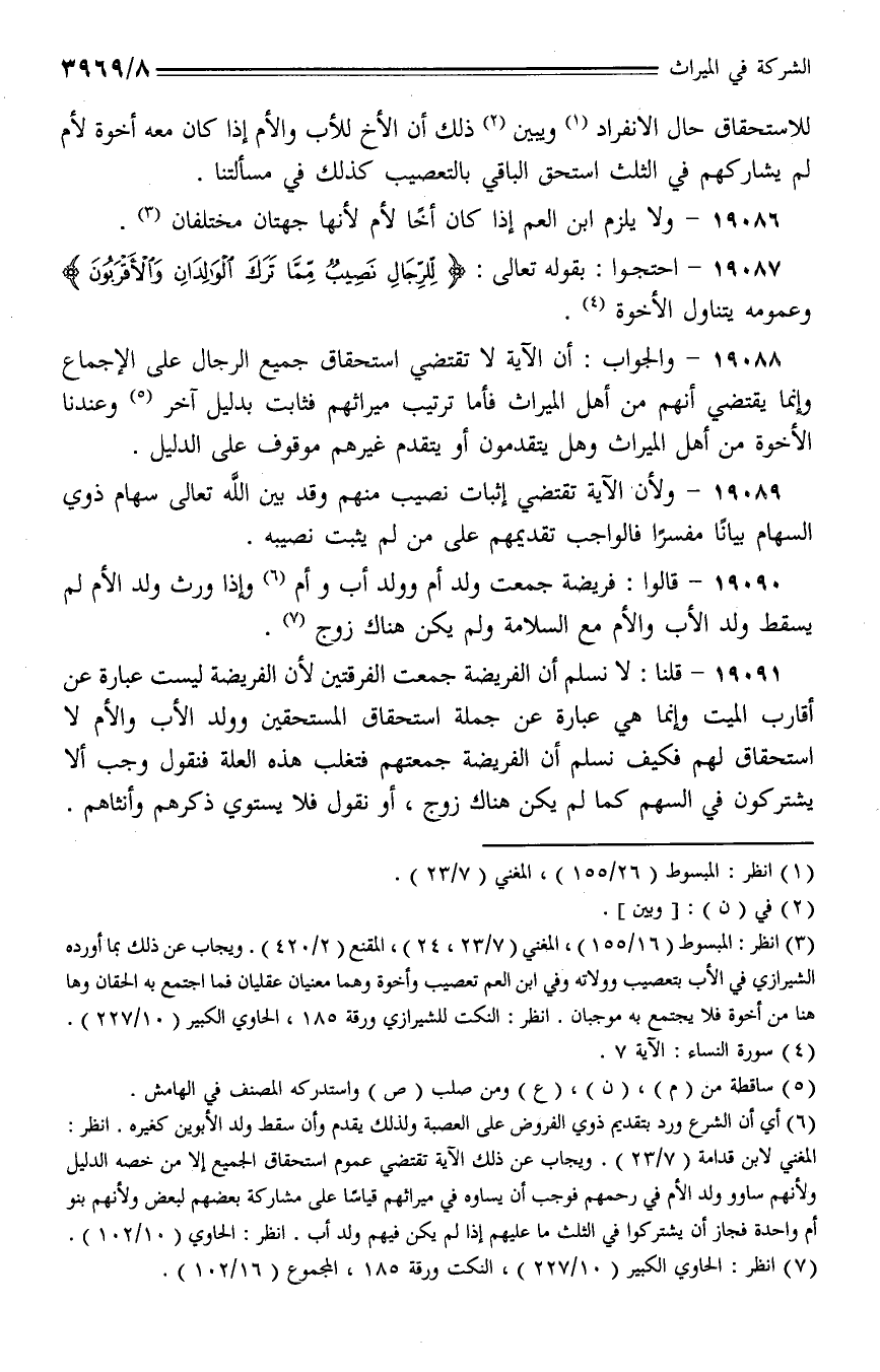 19088 - والجواب: أن الآية لا تقتضي استحقاق جميع الرجال على الإجماع وإنما يقتضي أنهم من أهل الميراث فأما ترتيب ميراثهم فثابت بدليل آخر وعندنا الأخوة من أهل الميراث وهل يتقدمون أو يتقدم غيرهم موقوف على الدليل.