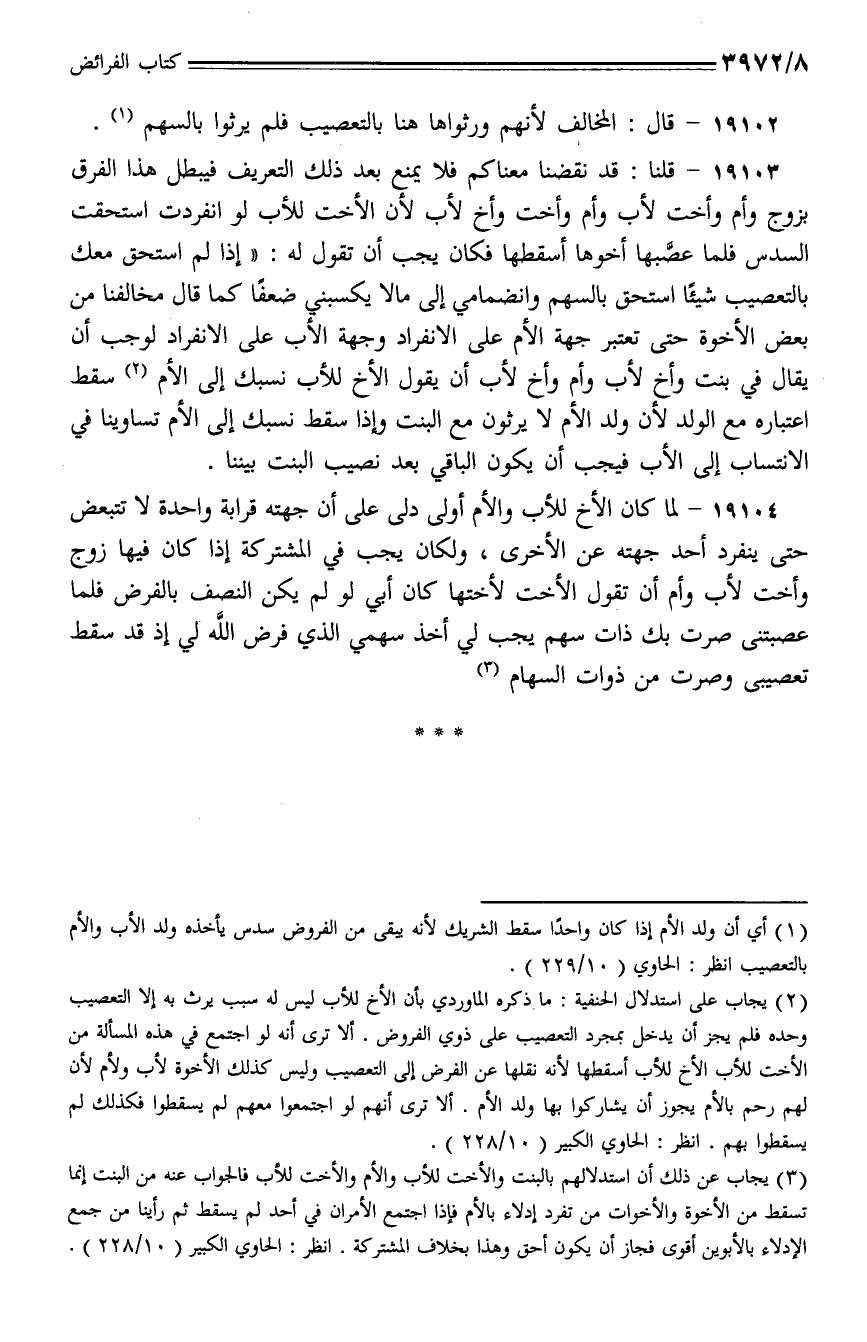 19102 - قال: المخالف لأنهم ورثواها هنا بالتعصيب فلم يرثوا بالسهم.