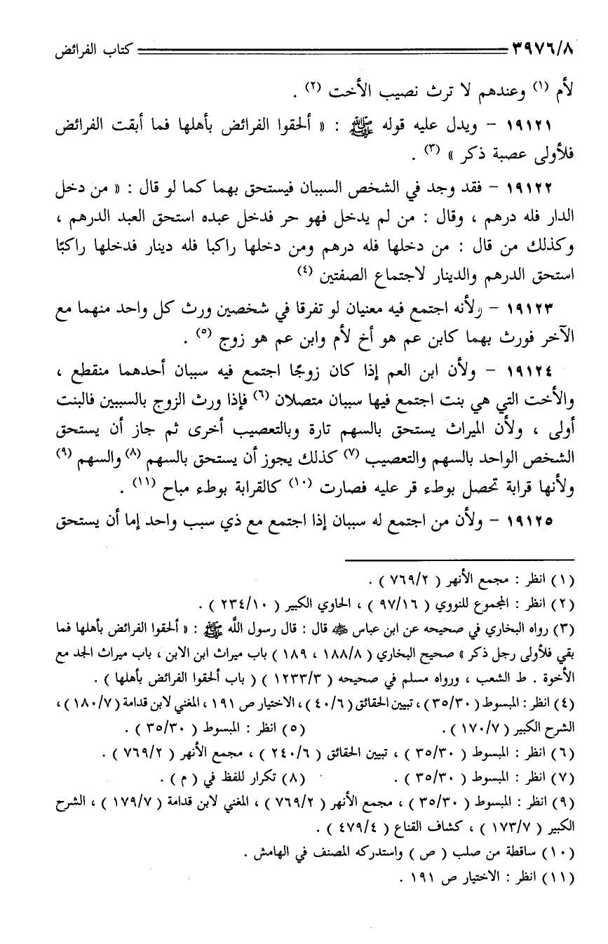 19121 - ويدل عليه قوله - صلى الله عليه وسلم -: (ألحقوا الفرائض بأهلها فما أبقت الفرائض فلأولى عصبة ذكر).