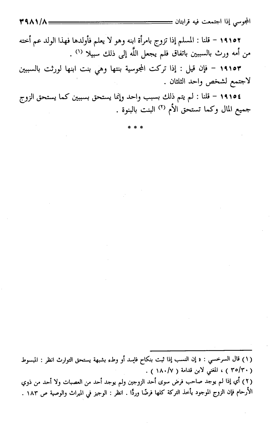 19153 - فإن قيل: إذا تركت المجوسية بنتها وهي بنت ابنها لورثت بالسببين لاجتمع لشخص واحد الثلثان.