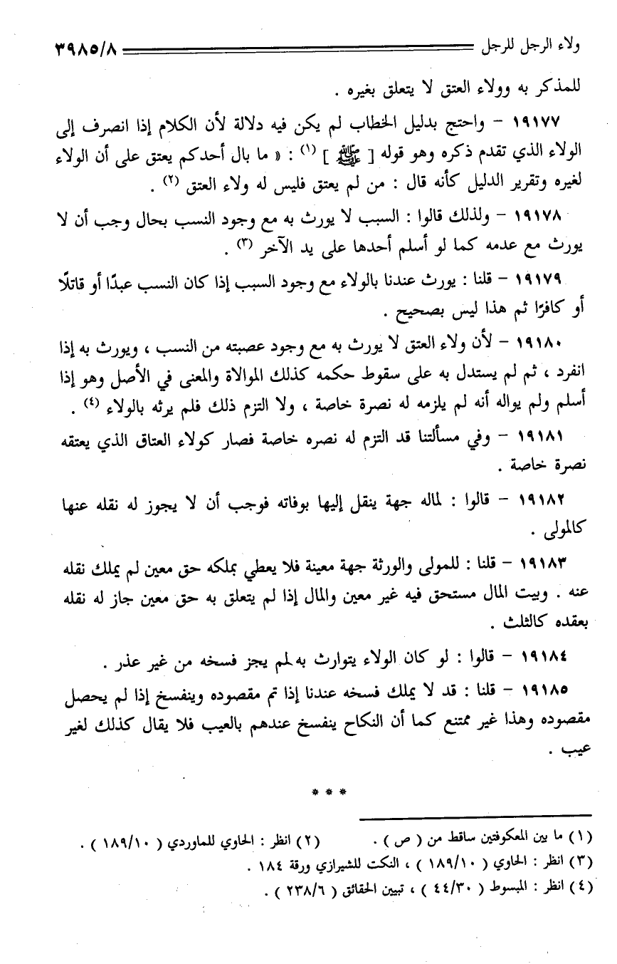 19179 - قلنا: يورث عندنا بالولاء مع وجود السبب إذا كان النسب عبدا أو قاتلا أو كافرا ثم هذا ليس بصحيح.
