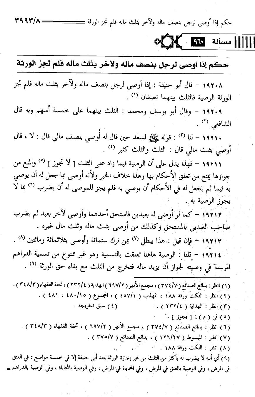 19214 - قلنا: الوصية هاهنا تعلقت بالتسمية وهو غير ممنوع من تسمية الدراهم المرسلة في وصيته لجواز أن يزيد ماله فتخرج من الثلث مع بقاء حق الورثة.