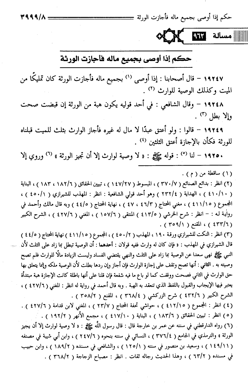 19250 - لنا: قوله: - صلى الله عليه وسلم -: (لا وصية لوارث إلا أن تجيز الورثة) وروي إلا