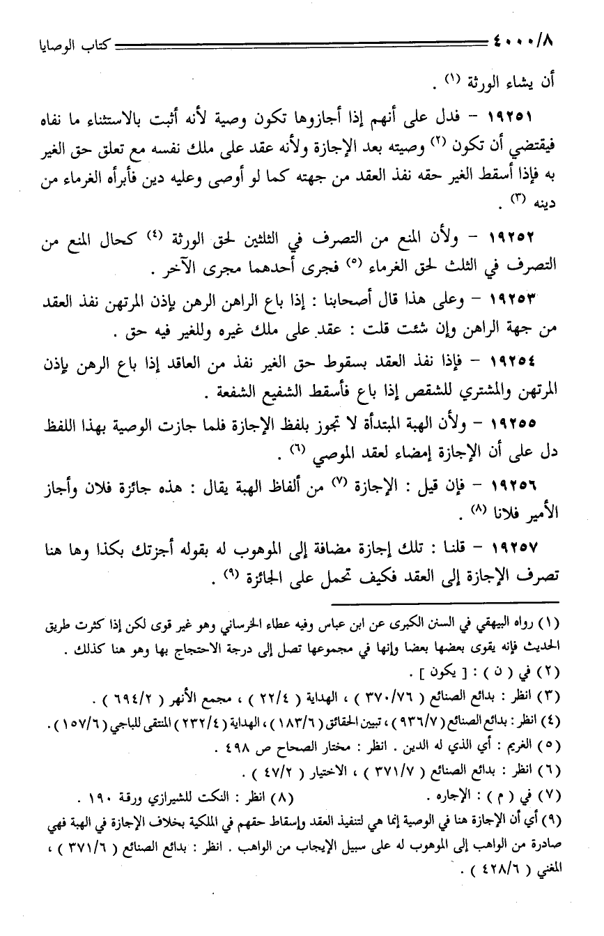 19255 - ولأن الهبة المبتدأة لا تجوز بلفظ الإجازة فلما جازت الوصية بهذا اللفظ دل على أن الإجازة إمضاء لعقد الموصي.