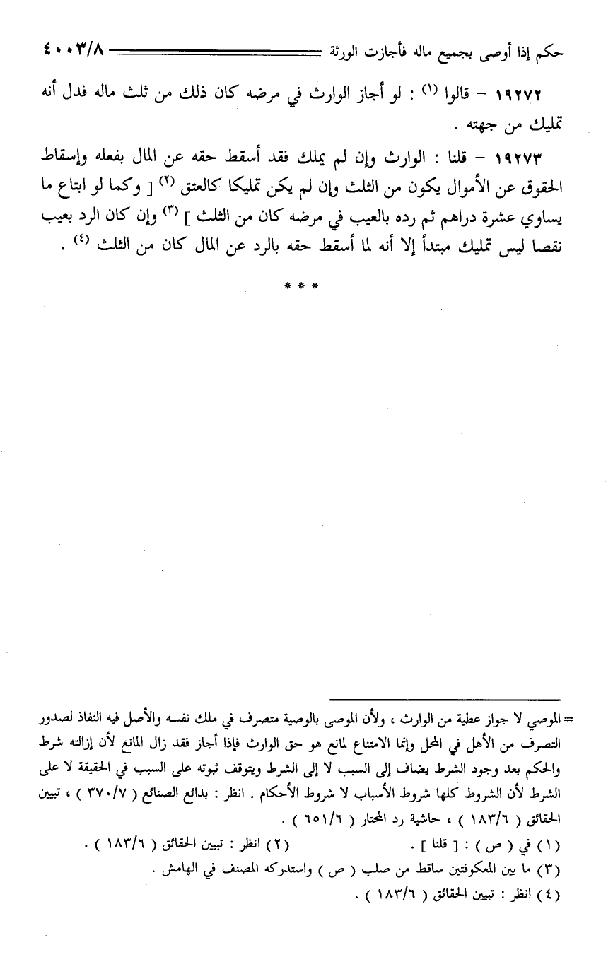 19273 - قلنا: الوارث وإن لم يملك فقد أسقط حقه عن المال بفعله وإسقاط الحقوق عن الأموال يكون من الثلث وإن لم يكن تمليكا كالعتق [وكما لو ابتاع ما يساوي عشرة دراهم ثم رده بالعيب في مرضه كان من الثلث] وإن كان الرد بعيب نقصا ليس مليك مبتدأ إلا أنه لما أسقط حقه بالرد عن المال كان من الثلث.