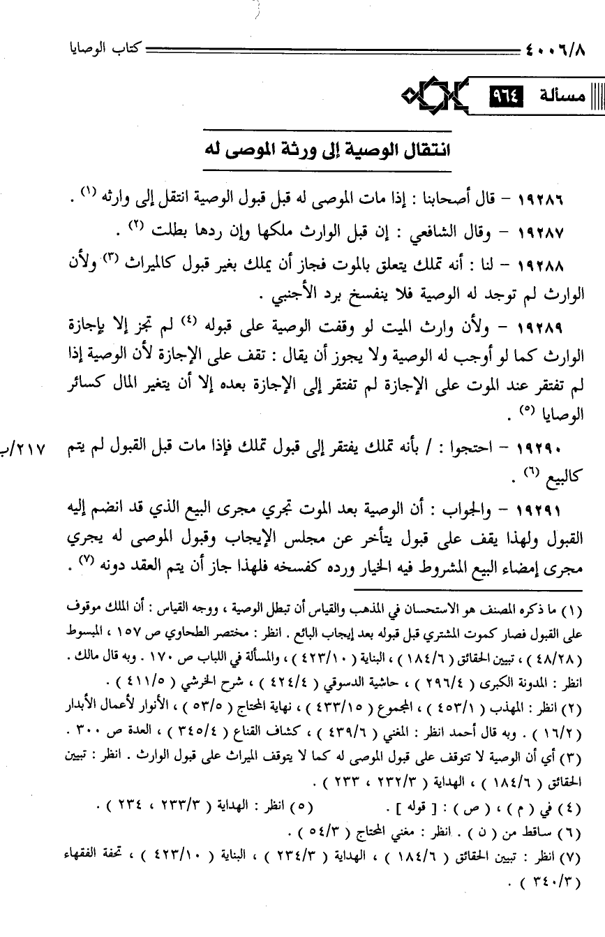 19286 - قال أصحابنا: إذا مات الموصى له قبل قبول الوصية انتقل إلى وارثه.