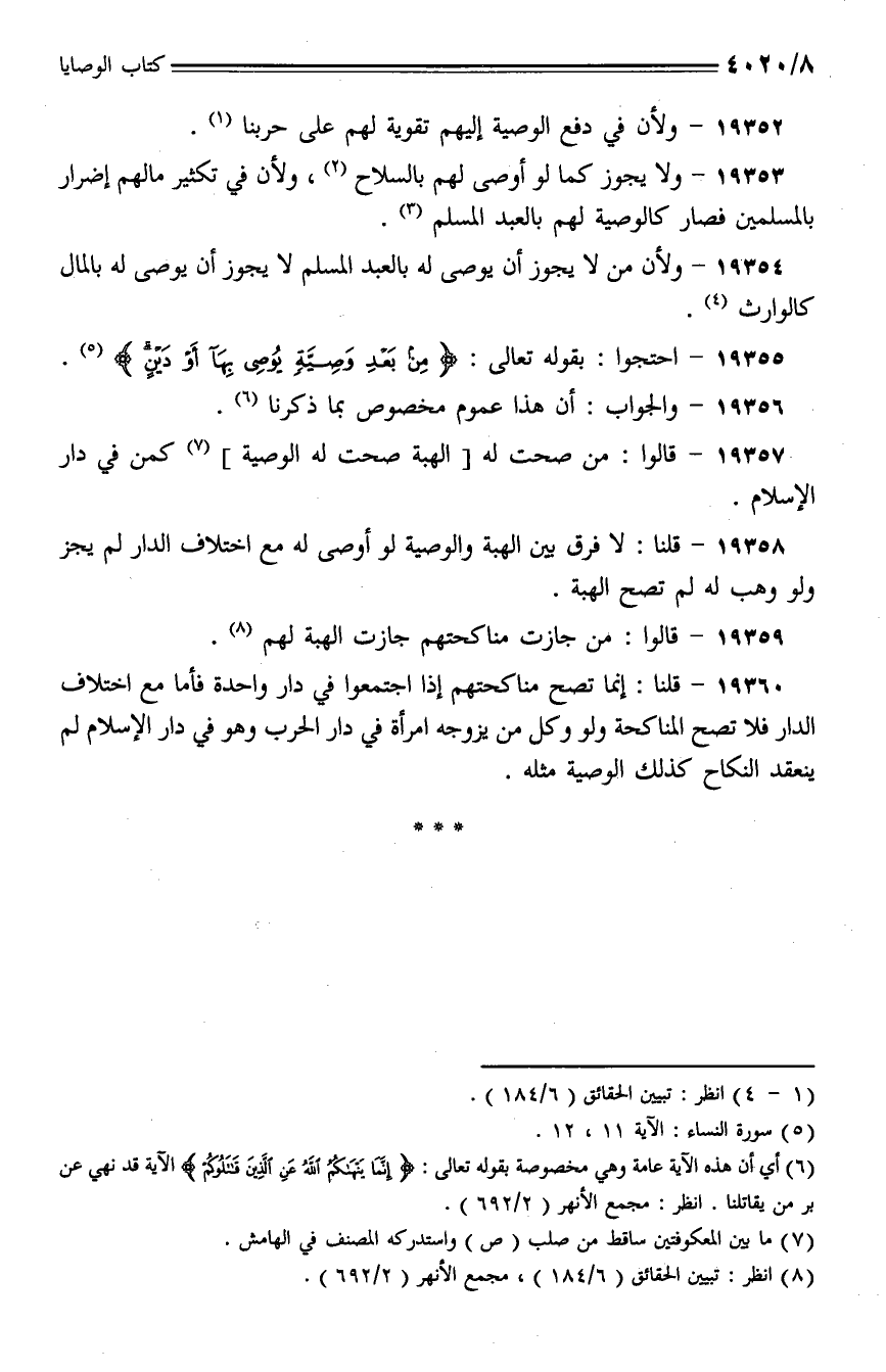 19352 - ولأن في دفع الوصية إليهم تقوية لهم على حربنا.