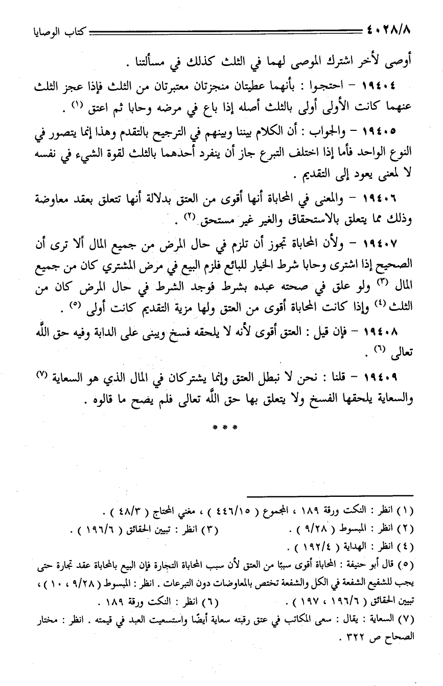 19406 - والمعنى في المحاباة أنها أقوى من العتق بدلالة أنها تتعلق بعقد معاوضة وذلك مما يتعلق بالاستحقاق والغير غير مستحق.