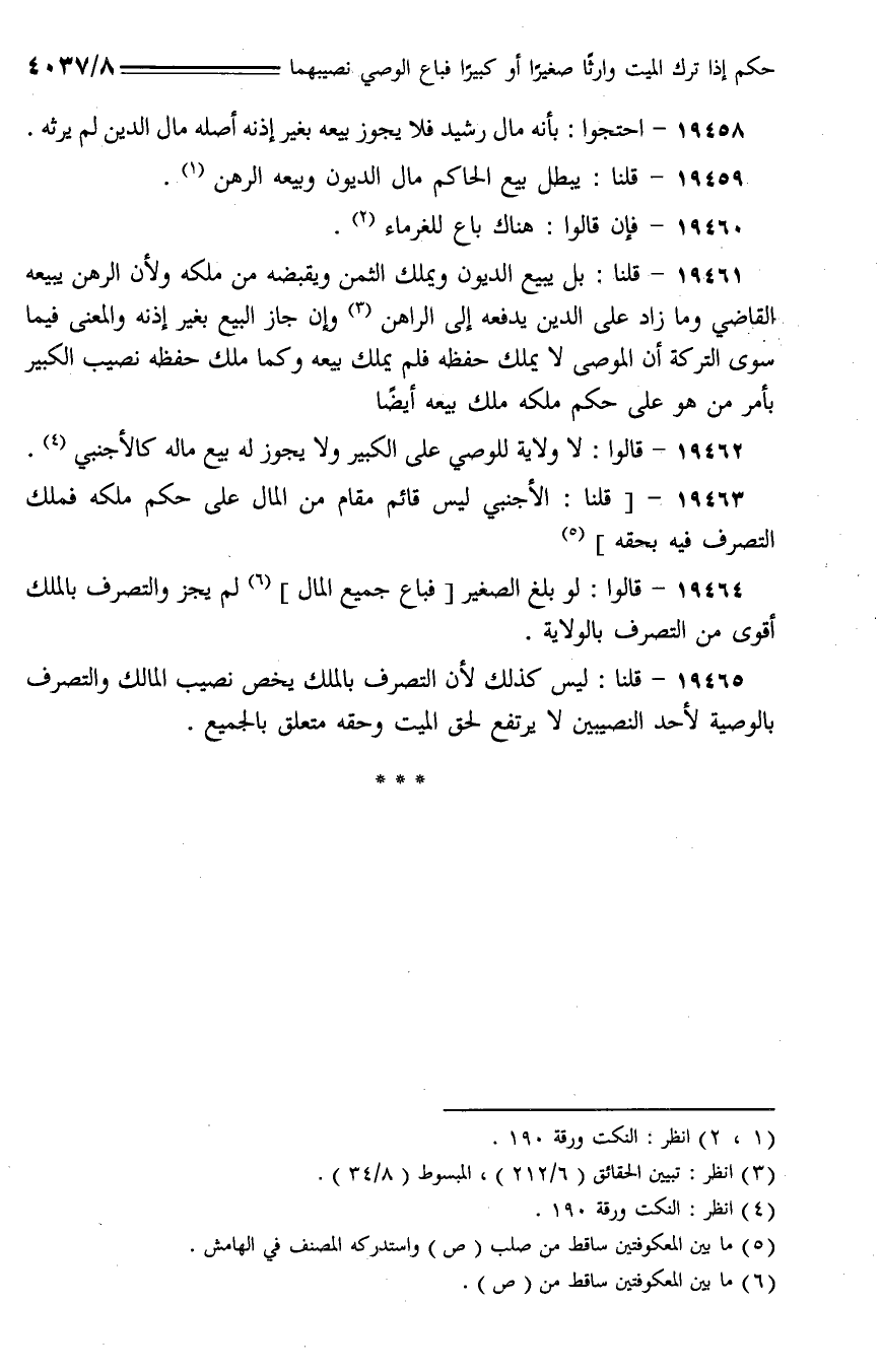 19461 - قلنا: بل يبيع الديون ويملك الثمن ويقبضه من ملكه ولأن الرهن يبيعه القاضي وما زاد على الدين يدفعه إلى الراهن وإن جاز البيع بغير إذنه والمعنى فيما سوى التركة أن الموصى لا يملك حفظه فلم يملك بيعه وكما ملك حفظه نصيب الكبير بأمر من هو على حكم ملكه ملك بيعه أيضا