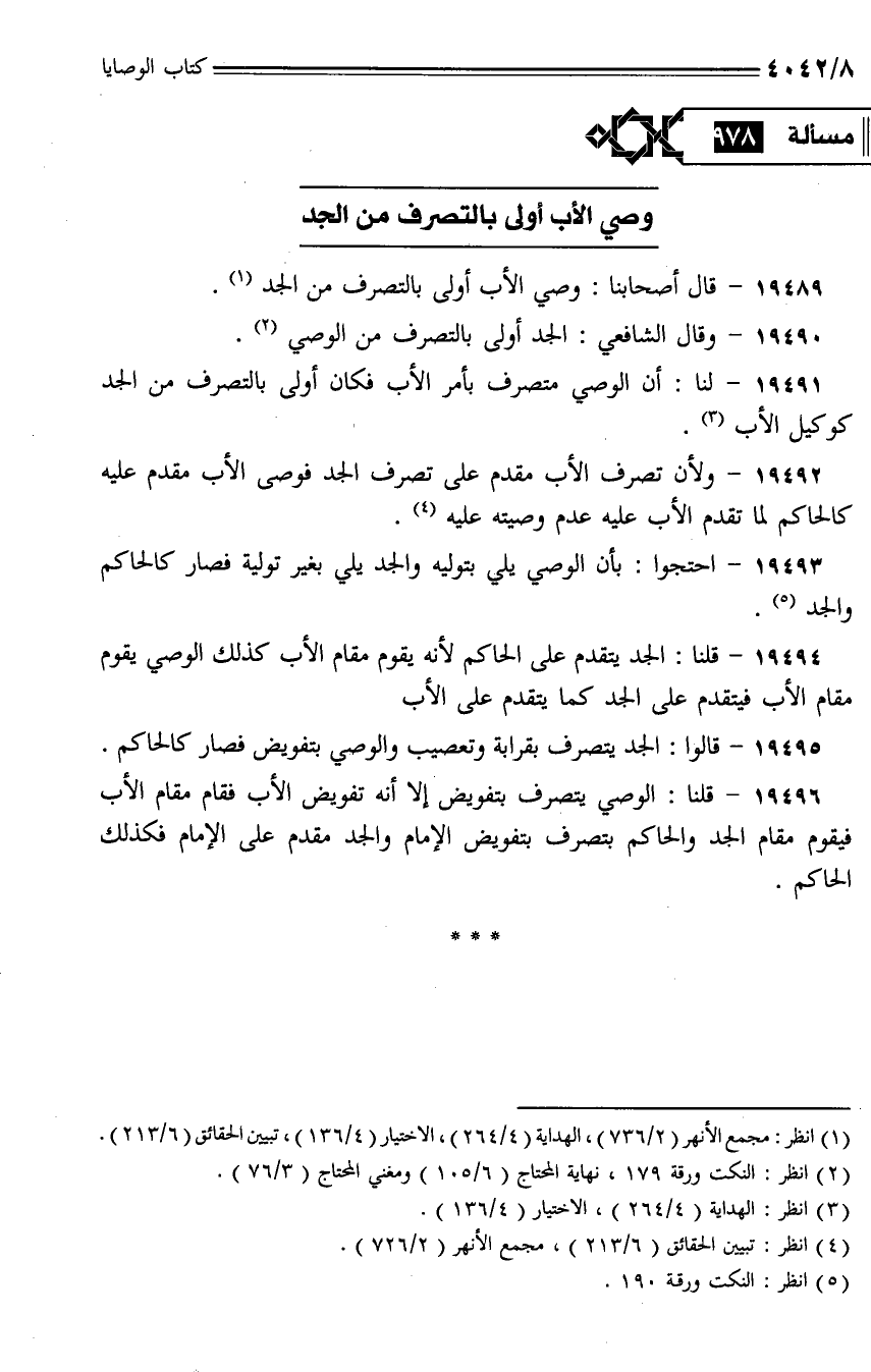 19492 - ولأن تصرف الأب مقدم على تصرف الجد فوصى الأب مقدم عليه كالحاكم لما تقدم الأب عليه عدم وصيته عليا.