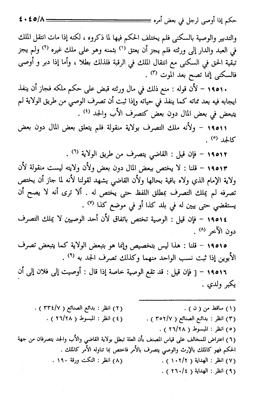19510 - لأن قوله: منع ذلك في مال ورثته قبض على حكم ملكه فجاز أن ينفذ إيجابه فيه بعد مماته كما ينفذ في حياته وإذا ثبت أن تصرف الوصي من طريق الولاية لم يبتعض في بعض المال دون بعض كتصرف الأب والجد.